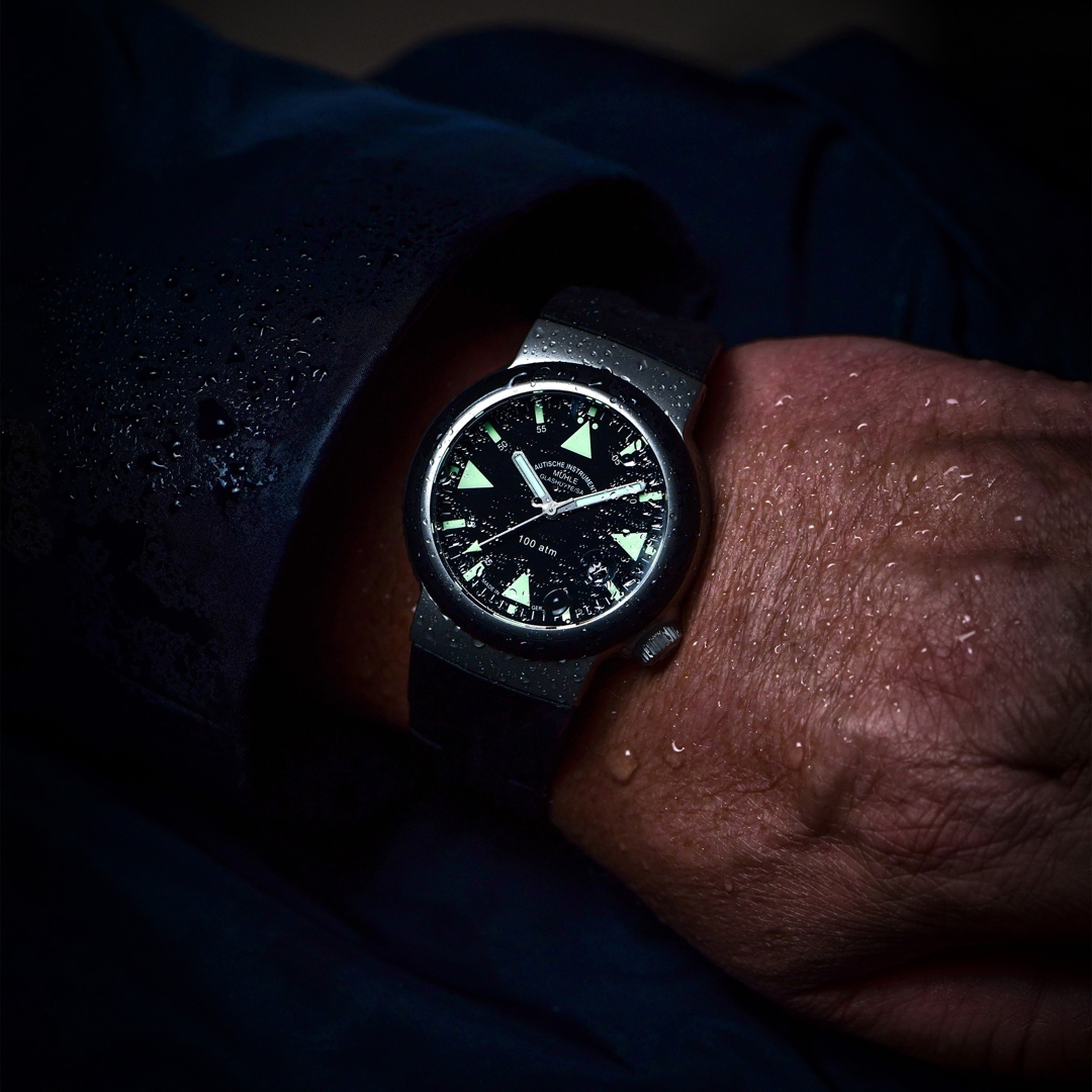 Wenn jede Sekunde zählt und die Naturgewalten wüten, brauchen Sie eine Uhr, die niemals aufgibt. Genau für solche extremen Einsätze wurde der S.A.R. Rescue Timer von Mühle Glashütte in direkter Zusammenarbeit mit den mutigen Kapitänen der Seenotretter erschaffen. Um im Ernstfall Verletzungen zu vermeiden, umschliesst eine weiche, stossdämpfende Kautschuklünette das speziell abgerundete Gehäuse schützend. Ein unfassbar starkes Saphirglas von vier Millimetern Dicke schirmt das Innere ab und widersteht mühelos einem gewaltigen Wasserdruck von bis zu 100 Bar. Das übersichtliche Zifferblatt, welches raffiniert mit einer von innen eingeschliffenen Datumslupe versehen ist, bietet Ihnen bei allen Wetterlagen die allerbeste Ablesbarkeit. Vertrauen Sie kompromisslos auf ein echtes nautisches Einsatzinstrument, dessen präzises Automatikwerk dank der bewährten Spechthalsregulierung jede noch so harte Erschütterung souverän meistert.