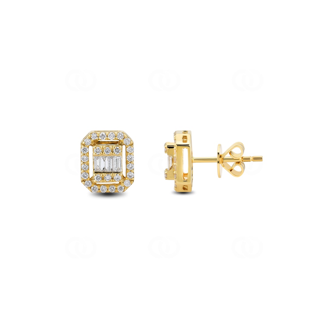 Diese fein gearbeiteten Ohrstecker in 18 Karat mit ihrer edlen Oberfläche schmücken hochwertige Diamanten im Baguetteschliff. Umrahmt von einer zarten Linie funkelnder Diamanten im Brillantschliff, entfalten die Diamanten ihre volle Brillanz. Filigran gefertigt, bilden diese Ohrstecker einen funkelnden Blickfang. In massivem 18 Karat Gelbgold gehüllt, sind diese Ohrstecker leicht und gleichzeitig elegant. Selbstverständlich besitzen sämtliche Diamantohrstecker ein Echtheitszertifikat und werden in einer edlen Schmuckbox geliefert.