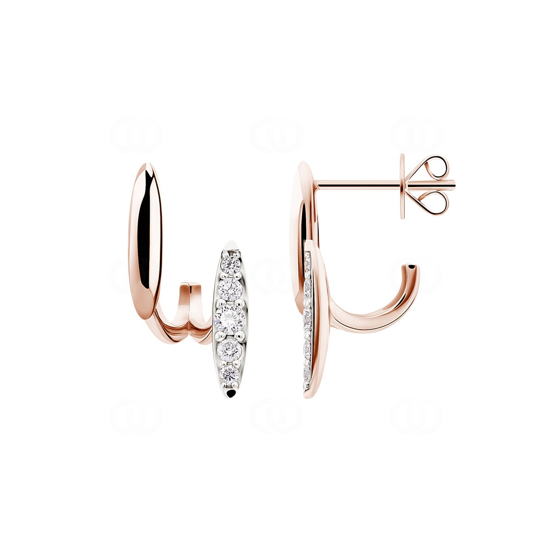 Jeder Ohrstecker präsentiert zwei anmutige Schmuckelemente: Das eine ist poliert und strahlt in der zarten Wärme des 18 Karat Roségolds. Das andere Element hingegen ist vollständig mit funkelnden Brillanten besetzt, die bei jeder Bewegung sanft das Licht einfangen und reflektieren.