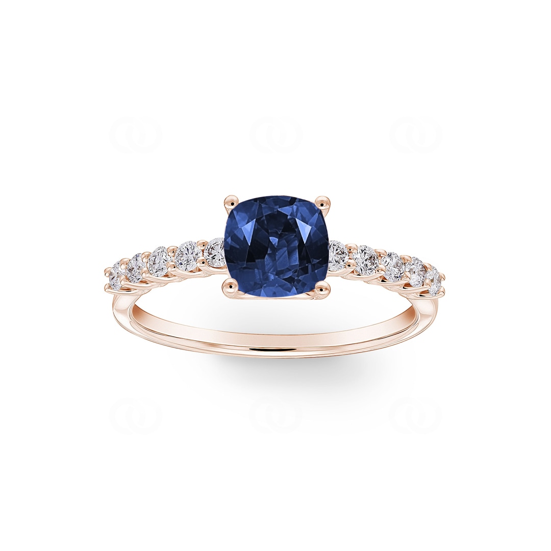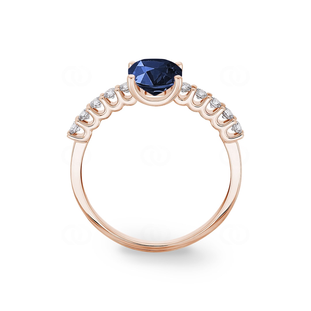 Der Saphir wird von zehn Diamanten begleitet, die erhaben auf der Ringschiene gefasst sind. Diese funkelnde Linie lenkt den Blick unweigerlich zur Mitte und bildet einen brillanten Kontrast zum warmen Goldton und dem dunklen Blau des Hauptsteins. Ein Ring, der Luxus nicht laut, sondern mit stilvoller Tiefe definiert – perfekt als Verlobungsring oder als besonderes Geschenk von bleibendem Wert.