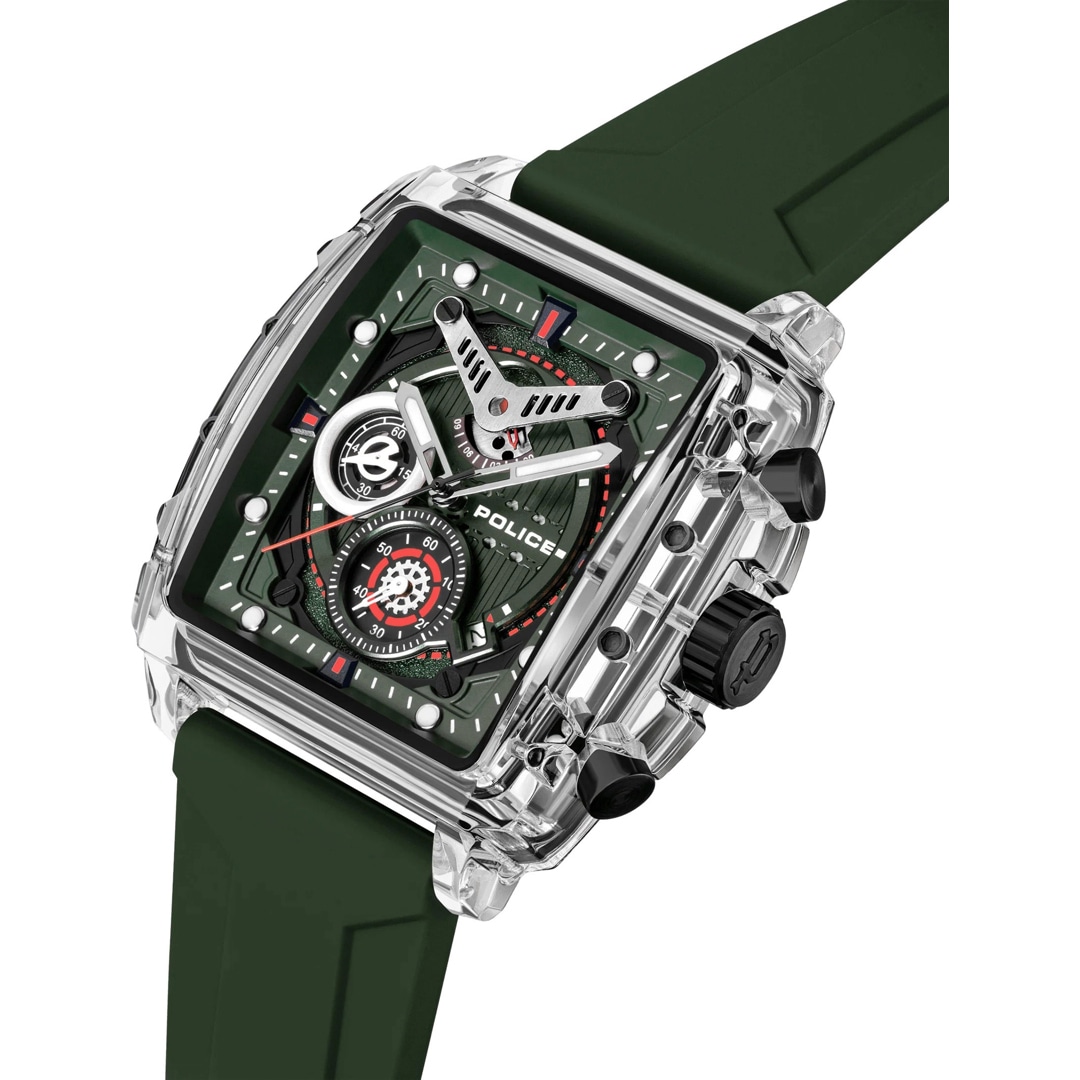 Ein Meisterwerk, geboren aus dem unerbittlichen Streben, Grenzen zu überschreiten. Angetrieben vom futuristischen Ethos der POLICE haben die Designer einen Zeitmesser entwickelt, dessen Herzstück eine unvergleichliche Dynamik ist.