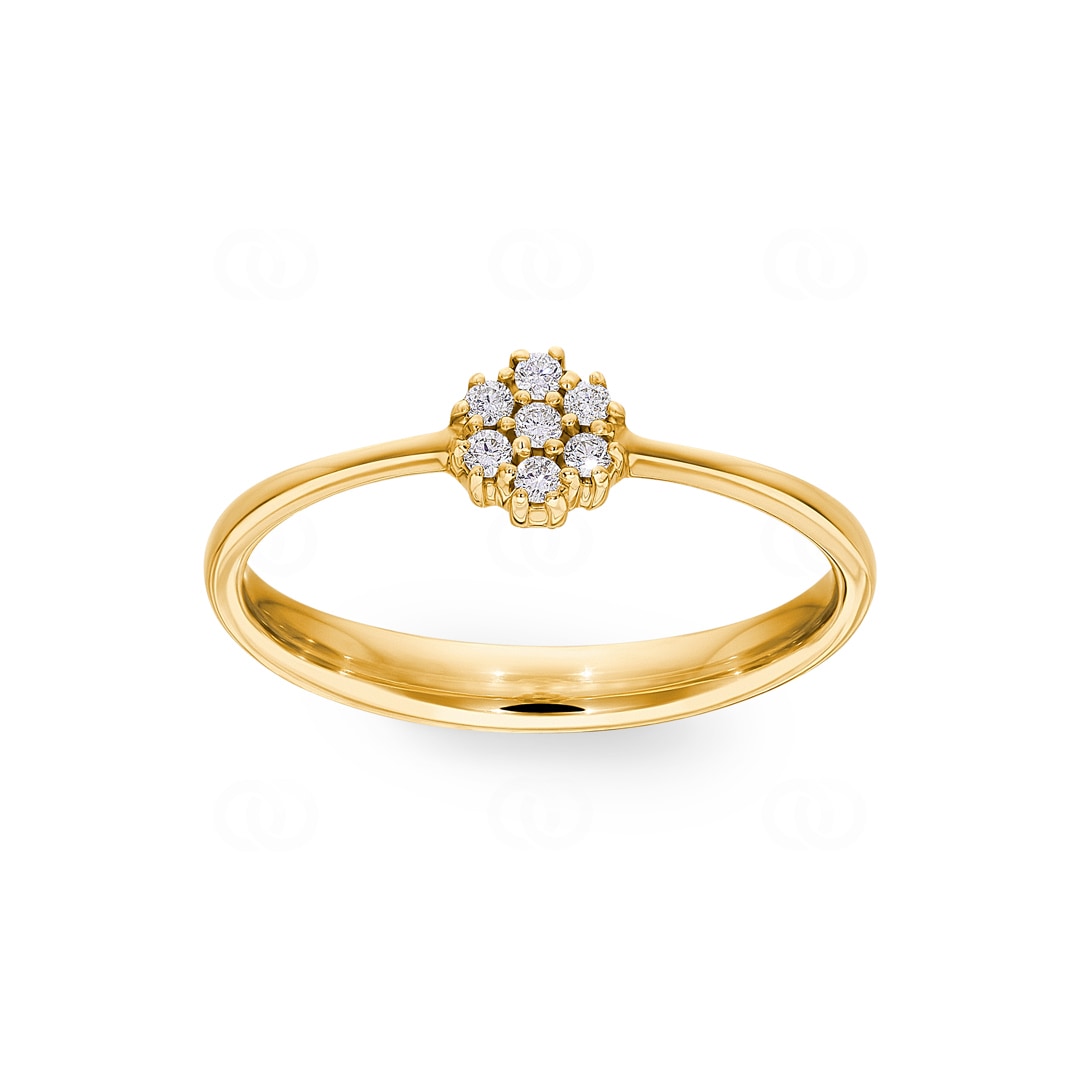 Dieser schlichte Goldring vereint meisterhafte Handwerkskunst mit zeitloser Eleganz. Die polierte Oberfläche verleiht dem Ring eine faszinierende Textur und einen edlen Glanz. Im Zentrum des Rings sind sieben funkelnde Diamanten in einer runden Anordnung kunstvoll eingefasst, die das Licht auf beeindruckende Weise reflektieren und dem Schmuckstück einen besonderen Glanz verleihen.