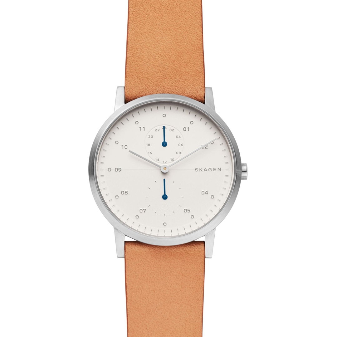 Die Herrenuhr Kristoffer von Skagen ist eine elegante Herrenuhr mit Edelstahlgehäuse und hochwertigem Lederband. Die geraden Linien dieses Modells erinnern an den endlosen Horizont, den man sieht, wenn man an Skagens Küste auf das Meer hinausschaut. Die perfekte Synthese zwischen klassischem Zeitmesser und moderner Alltagsuhr!