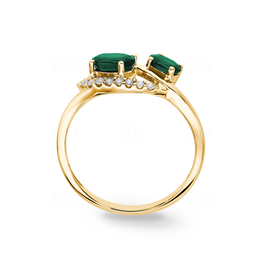 In einem harmonischen Spiel aus Raffinesse und Eleganz präsentiert sich dieser bezaubernde Ring aus strahlendem Gelbgold. Sein asymmetrisches, geschwungenes Design verleiht ihm eine unverwechselbare Ästhetik, die Blicke auf sich zieht und Herzen berührt. Zwei ovale Smaragde, jeder von unterschiedlicher Grösse, bilden das strahlende Zentrum dieses Meisterwerks, wie zwei funkelnde Juwelen in der Morgenröte. Umrahmt von insgesamt elf Diamanten, die sanft das Licht einfangen und es in einem Feuerwerk der Brillanz reflektieren. Dieser Ring ist mehr als nur ein Schmuckstück; er ist ein Symbol für Individualität und Schönheit, das die Persönlichkeit seiner Trägerin auf einzigartige Weise unterstreicht.