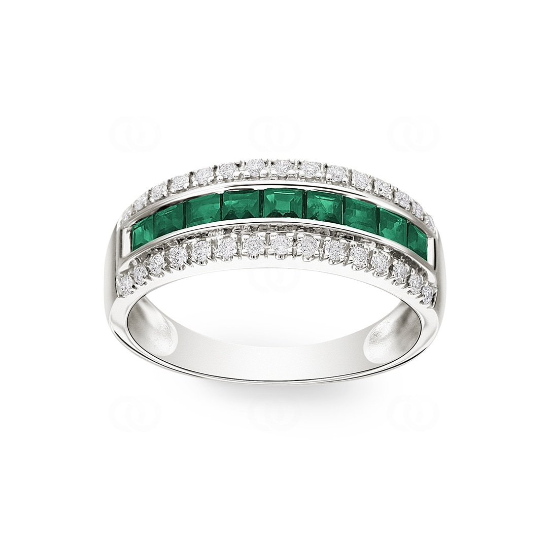 In einem Tanz aus Eleganz und Schönheit schmiegt sich dieser bezaubernde Ring aus strahlendem Weissgold sanft um deine Finger. In seiner Mitte funkeln neun Smaragde, eingebettet in eine zarte Kanalfassung, wie geheimnisvolle Oasen in einem silbernen Fluss. Umgeben von insgesamt 30 funkelnden Diamanten auf beiden Seiten, verleiht dieser Ring jedem Moment einen Hauch von Glamour und Anmut. Ein zeitloses Meisterwerk, das die Magie der Natur mit der Brillanz des Edelsteins vereint und jede Handbewegung in ein elegantes Ballett der Lichtreflexe verwandelt.