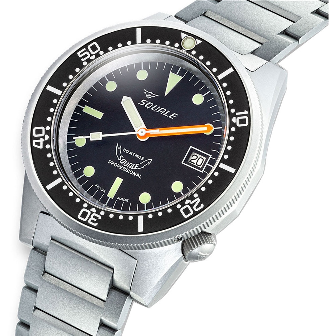 Die tiefe Leidenschaft für das Meer und die Entwicklung professioneller Tauchinstrumente prägen die Marke Squale seit ihrer Gründung im Jahr 1959. Wie der Hai im Logo symbolisieren die Zeitmesser Stärke und Zuverlässigkeit, für welche die Marke seit über 60 Jahren weltweit geschätzt wird. Die Identität von Squale ist untrennbar mit dem Prädikat „Swiss Made“ verbunden, das für höchste handwerkliche Präzision und Qualität steht. Als Ausstatter von Eliteeinheiten wie der italienischen Marina Militare oder der Polizia Italiana sind diese Uhren weit mehr als blosse Accessoires – sie sind funktionale Werkzeuge für Extrembedingungen. Mit einer Mischung aus historischem Erbe und technischer Innovation bleibt Squale ihrem Ziel treu, die Tiefen der Ozeane sicher zu erobern.