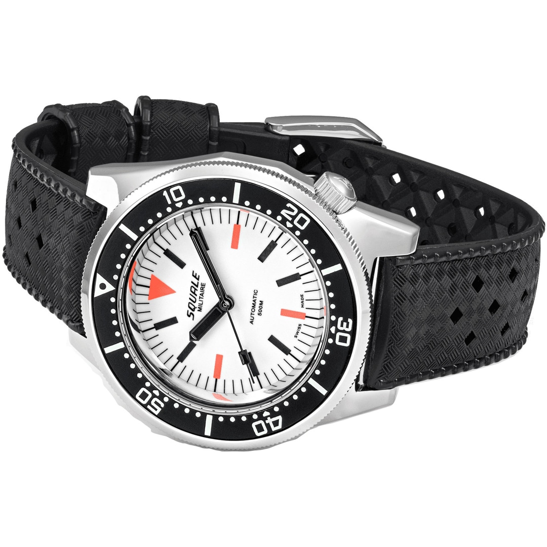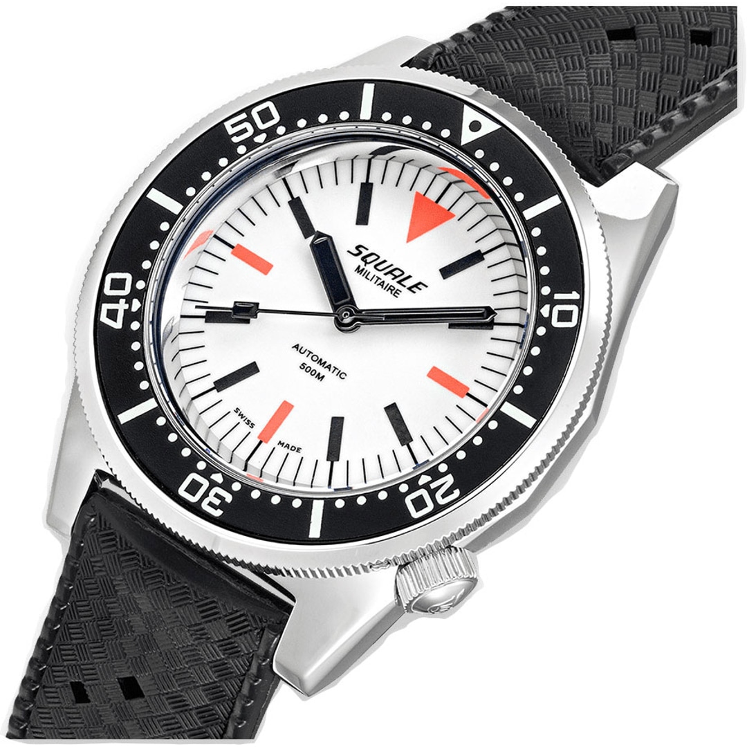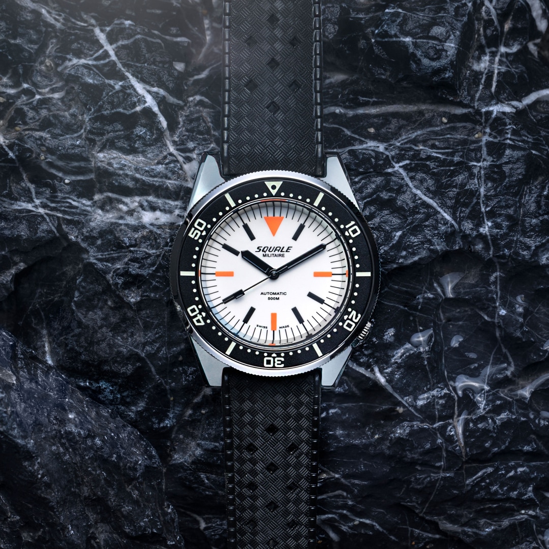 Die tiefe Leidenschaft für das Meer und die Entwicklung professioneller Tauchinstrumente prägen die Marke Squale seit ihrer Gründung im Jahr 1959. Wie der Hai im Logo symbolisieren die Zeitmesser Stärke und Zuverlässigkeit, für welche die Marke seit über 60 Jahren weltweit geschätzt wird. Die Identität von Squale ist untrennbar mit dem Prädikat „Swiss Made“ verbunden, das für höchste handwerkliche Präzision und Qualität steht. Als Ausstatter von Eliteeinheiten wie der italienischen Marina Militare oder der Polizia Italiana sind diese Uhren weit mehr als blosse Accessoires – sie sind funktionale Werkzeuge für Extrembedingungen. Mit einer Mischung aus historischem Erbe und technischer Innovation bleibt Squale ihrem Ziel treu, die Tiefen der Ozeane sicher zu erobern.