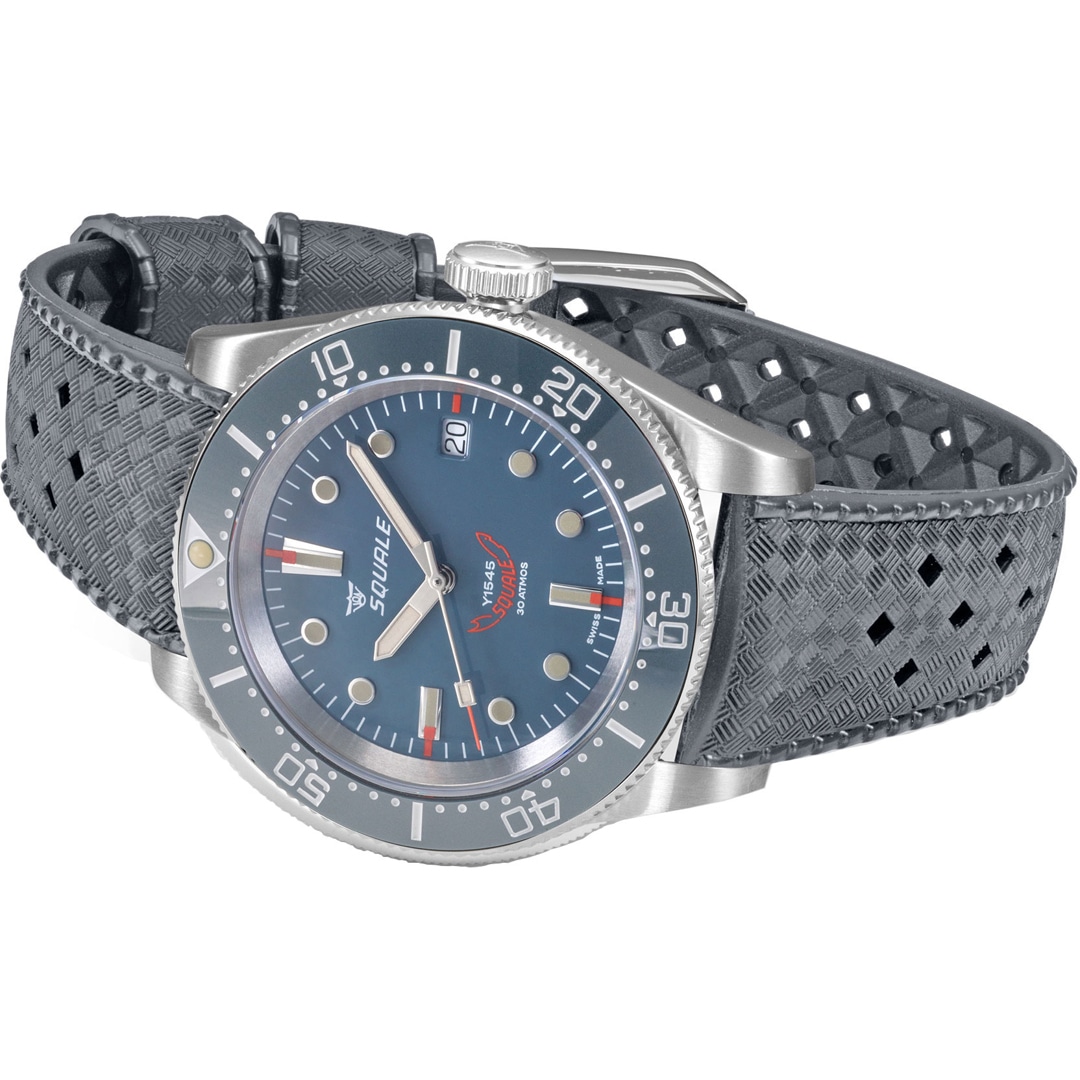 Die tiefe Leidenschaft für das Meer und die Entwicklung professioneller Tauchinstrumente prägen die Marke Squale seit ihrer Gründung im Jahr 1959. Wie der Hai im Logo symbolisieren die Zeitmesser Stärke und Zuverlässigkeit, für welche die Marke seit über 60 Jahren weltweit geschätzt wird. Die Identität von Squale ist untrennbar mit dem Prädikat „Swiss Made“ verbunden, das für höchste handwerkliche Präzision und Qualität steht. Als Ausstatter von Eliteeinheiten wie der italienischen Marina Militare oder der Polizia Italiana sind diese Uhren weit mehr als blosse Accessoires – sie sind funktionale Werkzeuge für Extrembedingungen. Mit einer Mischung aus historischem Erbe und technischer Innovation bleibt Squale ihrem Ziel treu, die Tiefen der Ozeane sicher zu erobern.