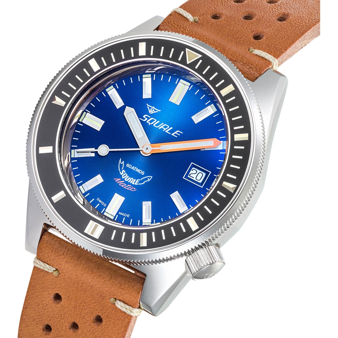Die tiefe Leidenschaft für das Meer und die Entwicklung professioneller Tauchinstrumente prägen die Marke Squale seit ihrer Gründung im Jahr 1959. Wie der Hai im Logo symbolisieren die Zeitmesser Stärke und Zuverlässigkeit, für welche die Marke seit über 60 Jahren weltweit geschätzt wird. Die Identität von Squale ist untrennbar mit dem Prädikat „Swiss Made“ verbunden, das für höchste handwerkliche Präzision und Qualität steht. Als Ausstatter von Eliteeinheiten wie der italienischen Marina Militare oder der Polizia Italiana sind diese Uhren weit mehr als blosse Accessoires – sie sind funktionale Werkzeuge für Extrembedingungen. Mit einer Mischung aus historischem Erbe und technischer Innovation bleibt Squale ihrem Ziel treu, die Tiefen der Ozeane sicher zu erobern.