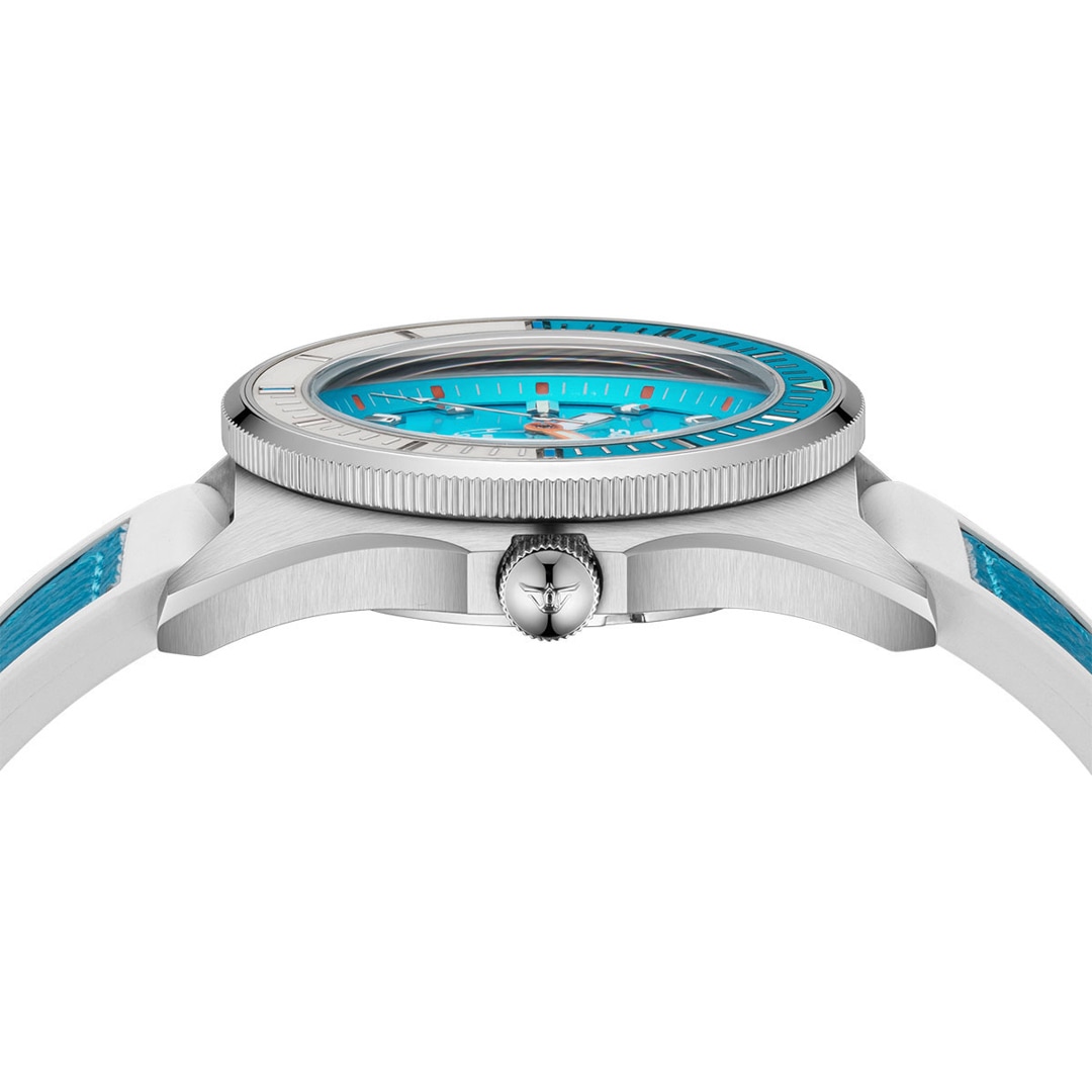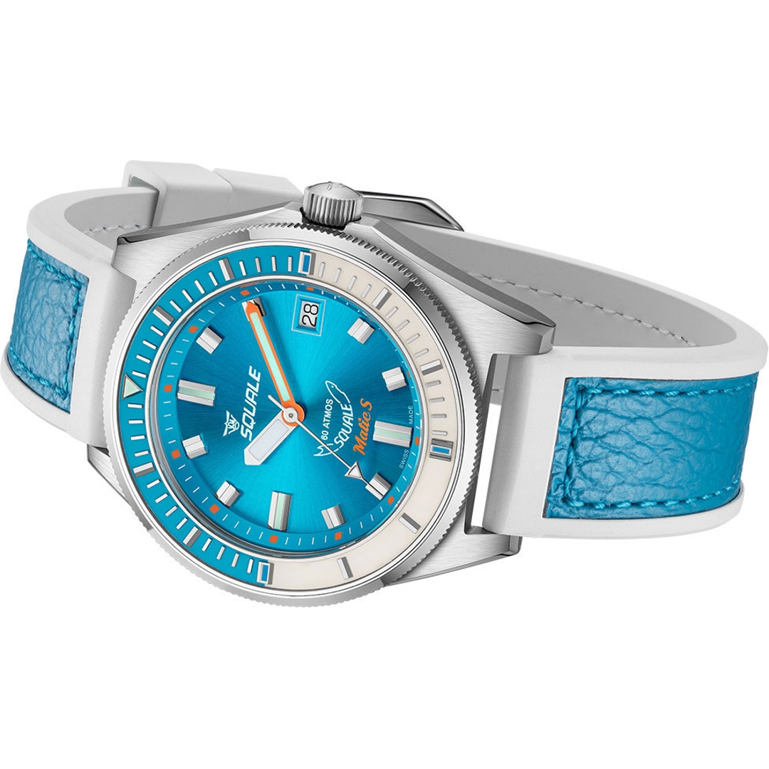 Die tiefe Leidenschaft für das Meer und die Entwicklung professioneller Tauchinstrumente prägen die Marke Squale seit ihrer Gründung im Jahr 1959. Wie der Hai im Logo symbolisieren die Zeitmesser Stärke und Zuverlässigkeit, für welche die Marke seit über 60 Jahren weltweit geschätzt wird. Die Identität von Squale ist untrennbar mit dem Prädikat „Swiss Made“ verbunden, das für höchste handwerkliche Präzision und Qualität steht. Als Ausstatter von Eliteeinheiten wie der italienischen Marina Militare oder der Polizia Italiana sind diese Uhren weit mehr als blosse Accessoires – sie sind funktionale Werkzeuge für Extrembedingungen. Mit einer Mischung aus historischem Erbe und technischer Innovation bleibt Squale ihrem Ziel treu, die Tiefen der Ozeane sicher zu erobern.