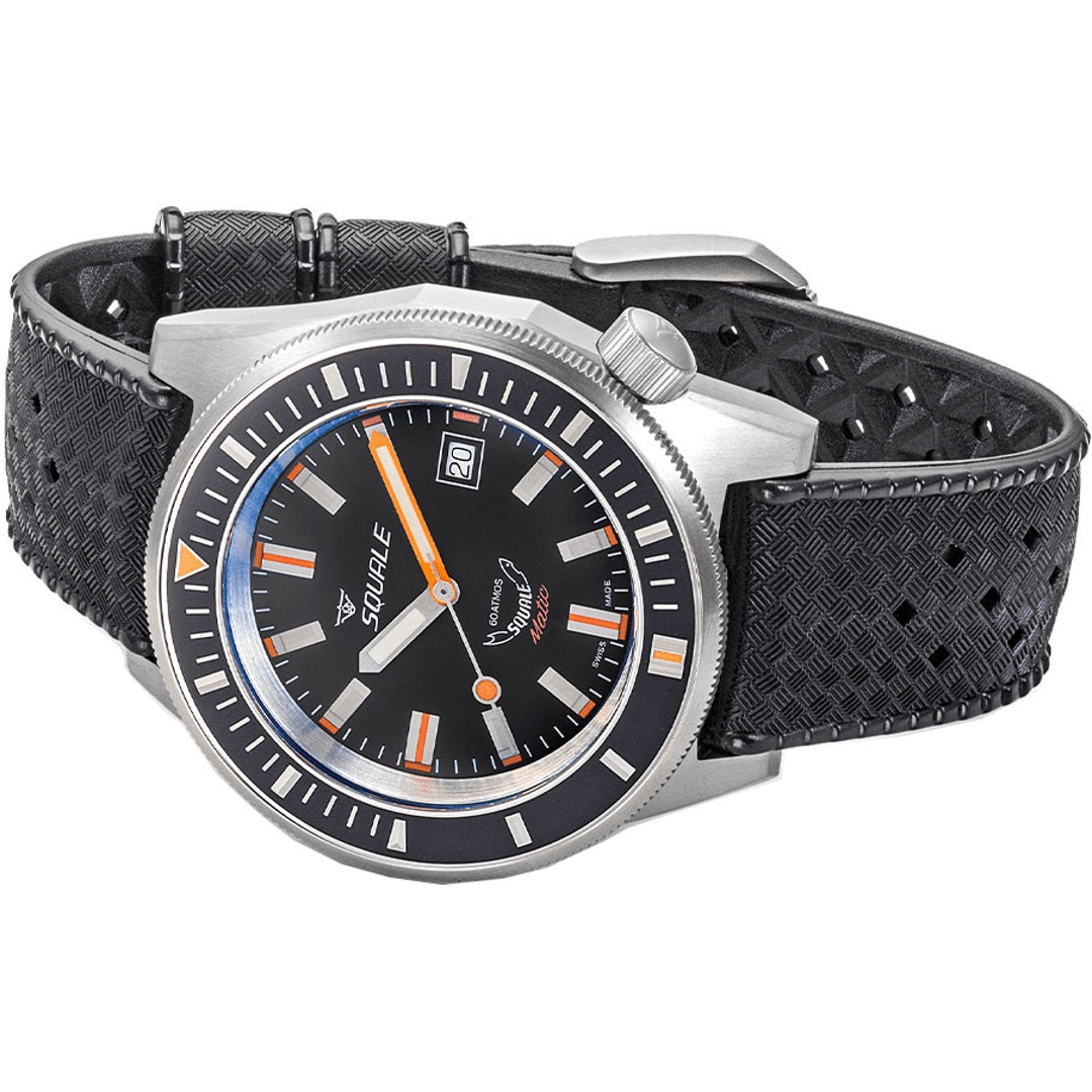 Die tiefe Leidenschaft für das Meer und die Entwicklung professioneller Tauchinstrumente prägen die Marke Squale seit ihrer Gründung im Jahr 1959. Wie der Hai im Logo symbolisieren die Zeitmesser Stärke und Zuverlässigkeit, für welche die Marke seit über 60 Jahren weltweit geschätzt wird. Die Identität von Squale ist untrennbar mit dem Prädikat „Swiss Made“ verbunden, das für höchste handwerkliche Präzision und Qualität steht. Als Ausstatter von Eliteeinheiten wie der italienischen Marina Militare oder der Polizia Italiana sind diese Uhren weit mehr als blosse Accessoires – sie sind funktionale Werkzeuge für Extrembedingungen. Mit einer Mischung aus historischem Erbe und technischer Innovation bleibt Squale ihrem Ziel treu, die Tiefen der Ozeane sicher zu erobern.