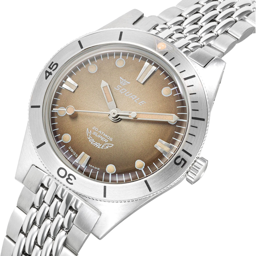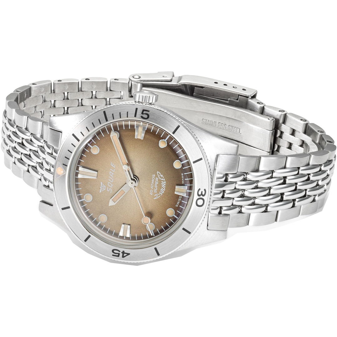 Die tiefe Leidenschaft für das Meer und die Entwicklung professioneller Tauchinstrumente prägen die Marke Squale seit ihrer Gründung im Jahr 1959. Wie der Hai im Logo symbolisieren die Zeitmesser Stärke und Zuverlässigkeit, für welche die Marke seit über 60 Jahren weltweit geschätzt wird. Die Identität von Squale ist untrennbar mit dem Prädikat „Swiss Made“ verbunden, das für höchste handwerkliche Präzision und Qualität steht. Als Ausstatter von Eliteeinheiten wie der italienischen Marina Militare oder der Polizia Italiana sind diese Uhren weit mehr als blosse Accessoires – sie sind funktionale Werkzeuge für Extrembedingungen. Mit einer Mischung aus historischem Erbe und technischer Innovation bleibt Squale ihrem Ziel treu, die Tiefen der Ozeane sicher zu erobern.