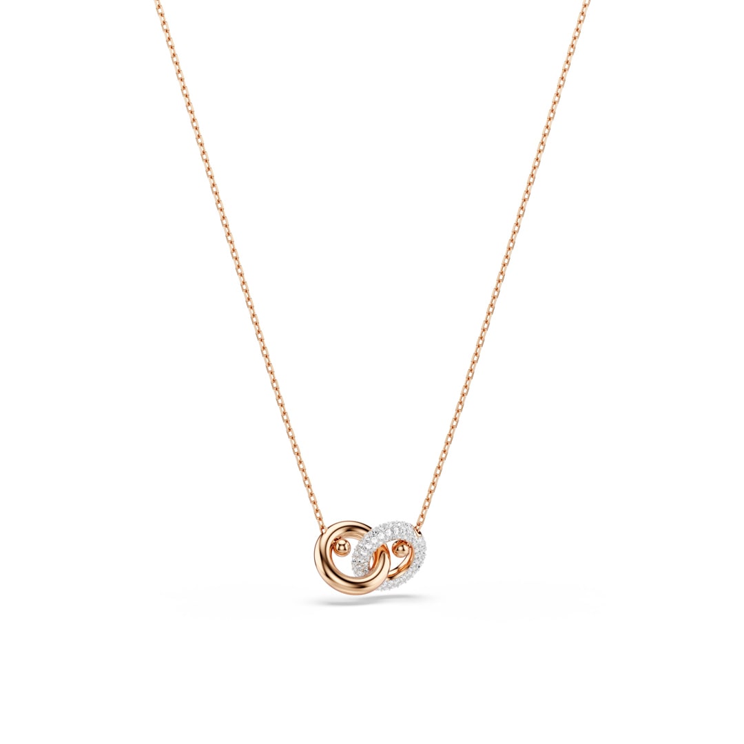 Mit diesem Anhänger aus der Dextera Familie beweisen Sie, das Ihnen Einheit sehr wichtig ist. Das Design in Roségold-Legierungsschicht präsentiert zwei ineinandergreifende, abgerundete Ringe, von denen einer in durchgehendem Pavé schimmert. Dieses fesselnde Schmuckstück kombiniert auffallende Formen mit strahlenden klaren Kristallen und bringt maximalen Luxus in Ihr Styling.