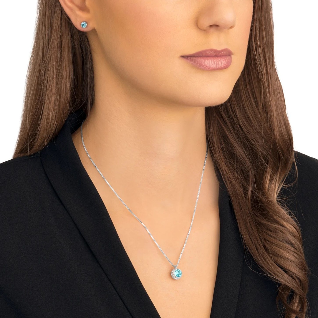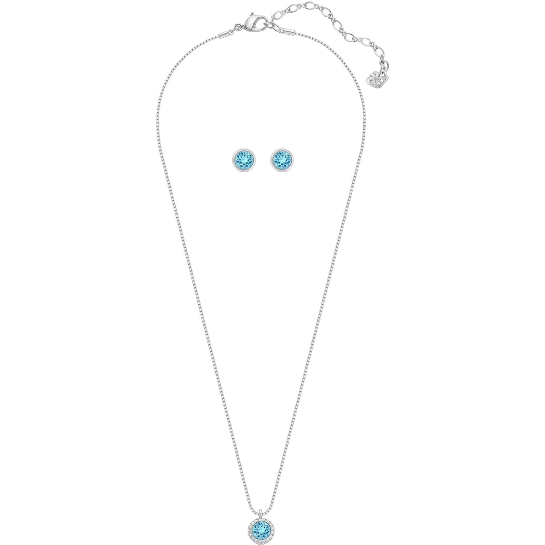 Elegant und attraktiv. Dieses einzigartige, rhodinierte Set funkelt in erfrischendem blauen Kristall und klarem Kristallpavé. Es verleiht deinem Outfit einen frischen Farbtupfer und eignet es sich perfekt als Geschenk für deine Liebsten.