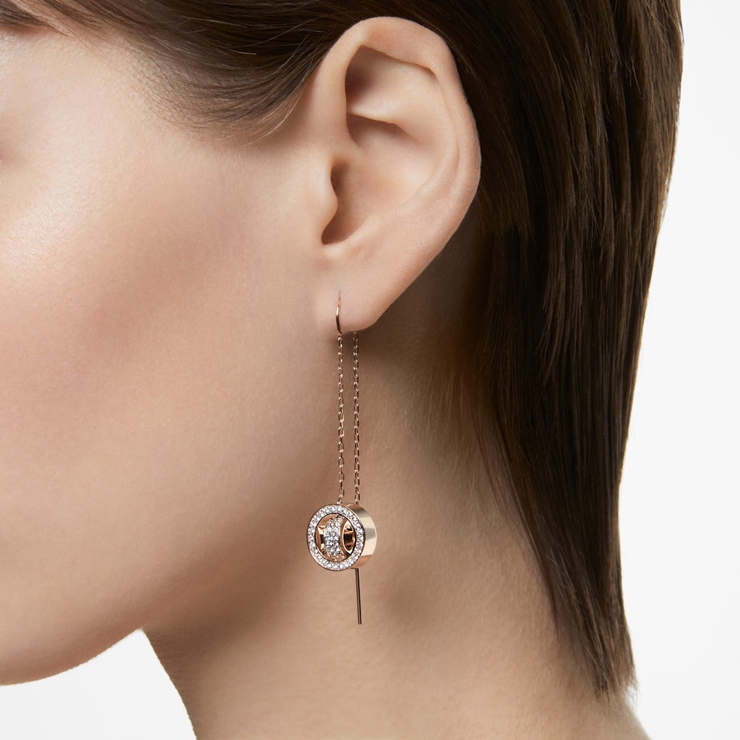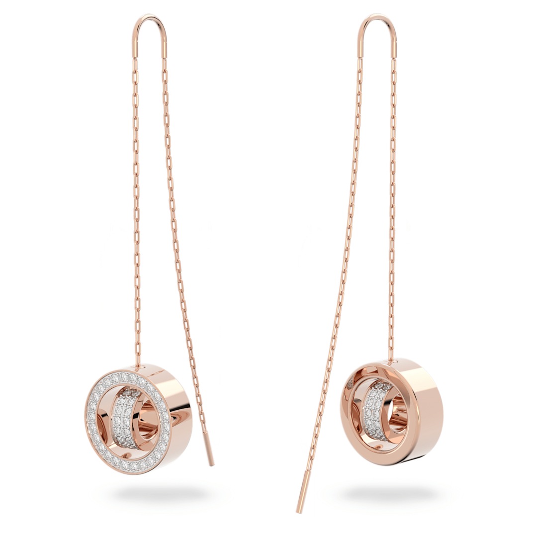 Setzen Sie ein Statement und drücken Sie sich mit diesen Drop-Ohrhängern aus. Dieses moderne Design ist mit Pavé-Kristallen verziert und die verschlungenen Kreise hängen von einer eleganten Kette mit Roségold-Legierungsschicht. Hier verschmilzt aufwendige Handwerkskunst mit aussagekräftigen Stilen.