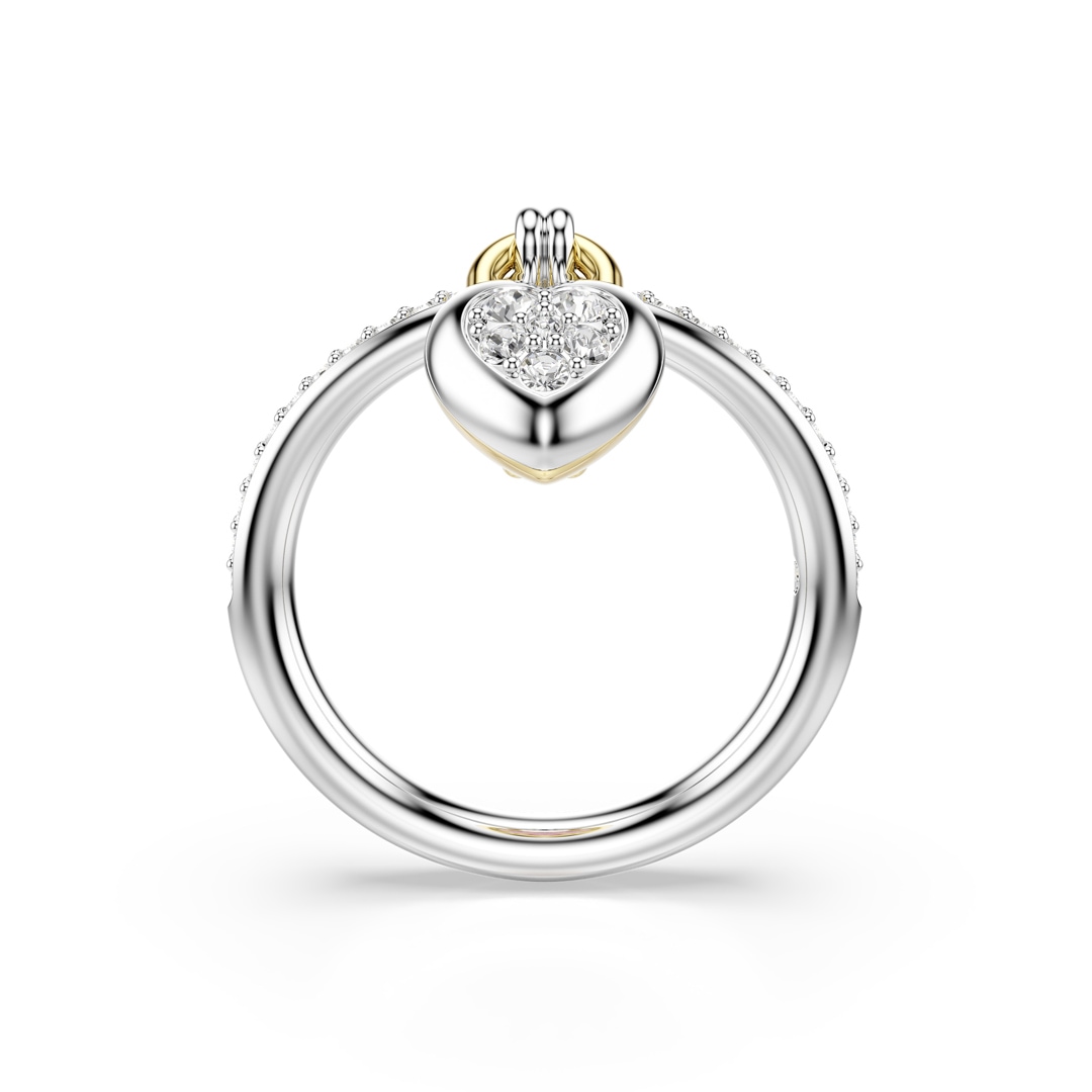 Dieser zierliche Ring in klarem Kristallpavé mit dem von einem Medaillon inspirierten Herzen ist das perfekte Symbol für Ihre Hingabe. Das romantische Motiv präsentiert auf der einen Seite einen rosa Swarovski Zirconia, gefasst in Goldlegierungsschicht, und auf der anderen Seite klares Kristallpavé in rhodinierter Fassung.