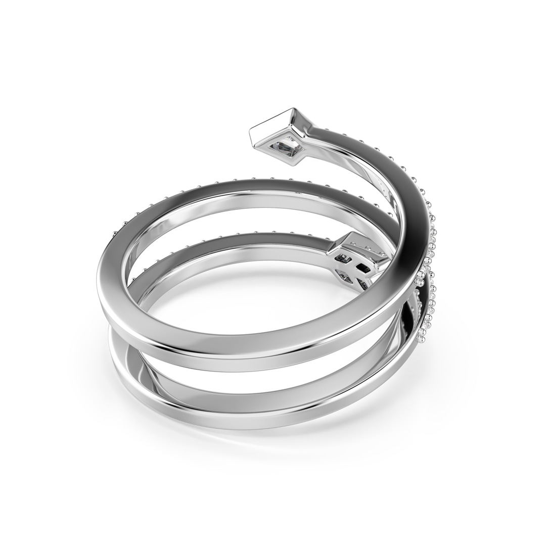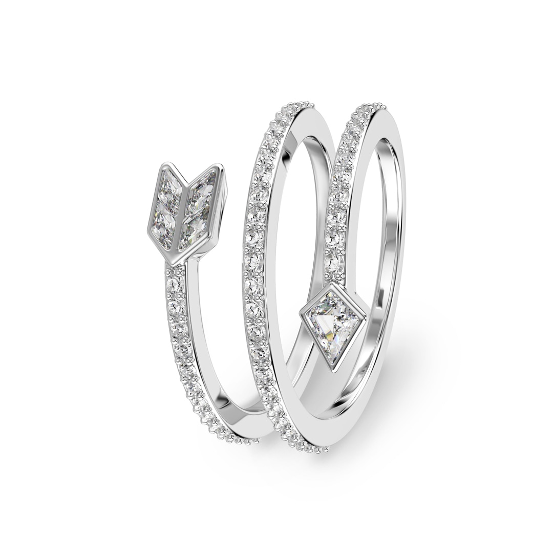 Mit diesem spiralförmigen Ring in Form von Amors Pfeil verleihen Sie Ihrem Styling eine verliebte Note. Das einzigartige Design kombiniert ein elegant rhodiniertes Finish mit klaren Rundkristallen und erzeugt so einen Look von purer, wirbelnder Leidenschaft.