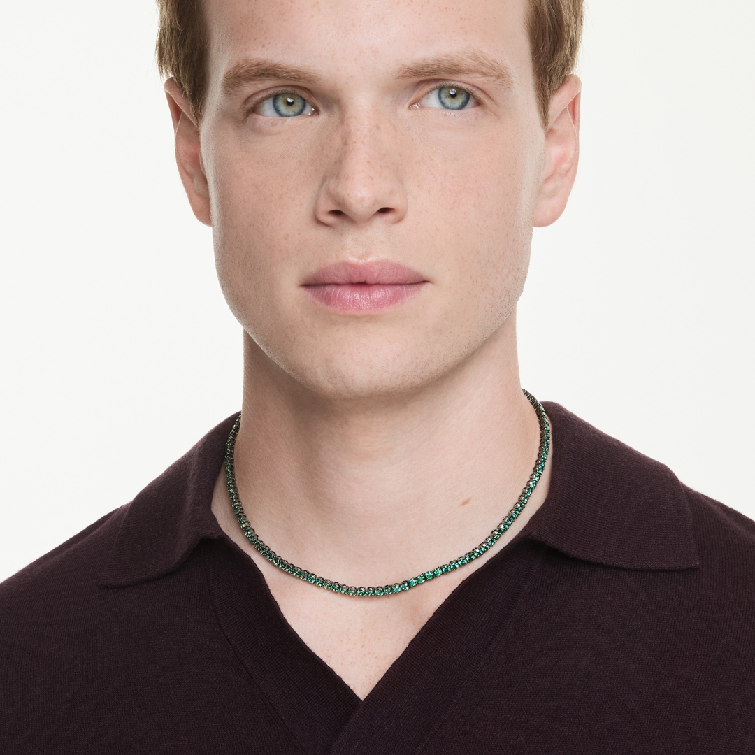 Diese Matrix Tennis Halskette ist eine moderne Interpretation eines wahren Klassikers und zeichnet sich durch hypnotische grüne Swarovski Zirconia und Metall in kühler ruthenierter Beschichtung aus. Die gleichmässig angeordneten Elemente fangen das Licht wunderbar ein und offenbaren tiefe Farbreflexionen. Schenken Sie dieses zeitlose Schmuckstück sich selbst oder einem anderen geliebten Menschen.