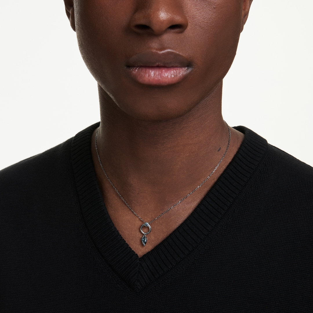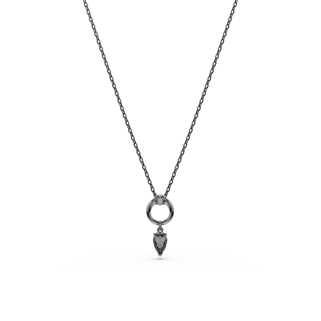 Dieser Mesmera Anhänger ist die perfekte Mischung aus intensiver Farbe und Raffinesse und damit ein Blickfänger, der Sie jeden Tag begleitet. Das geschmeidige Motiv präsentiert einen grauen Swarovski Zirconia im Tropfenschliff, der an einem luxuriösen, ruthenierten Ring hängt. Im Zentrum strahlt ein runder Swarovski Zirconia. Dank des praktischen Zugmechanismus an der Kette lässt sich der Anhänger ganz einfach auf die gewünschte Länge einstellen.