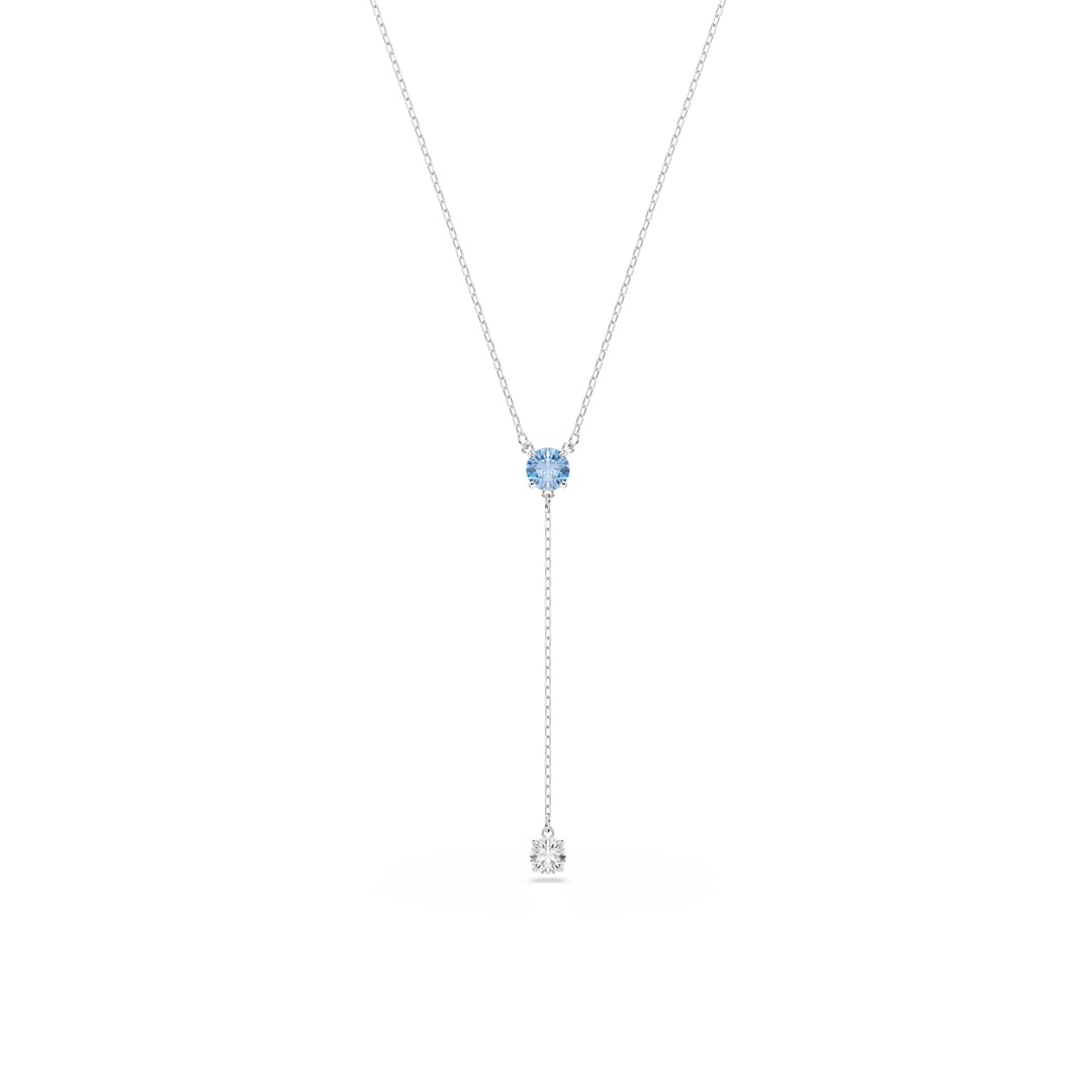 Die schlichten Formen und intensiven Farben dieser Halskette sind Ausdruck purer Lebensfreude im Stil von Swarovski. Das rhodinierte Design präsentiert ein zentrales, blaues Kristallelement im Rundschliff und einen klaren Swarovski Zirconia, der darunter an einer zierlichen Kette hängt. Tragen Sie dieses lichthelle Schmuckstück, um Ihren Look bei besonderen Anlässen zu veredeln.