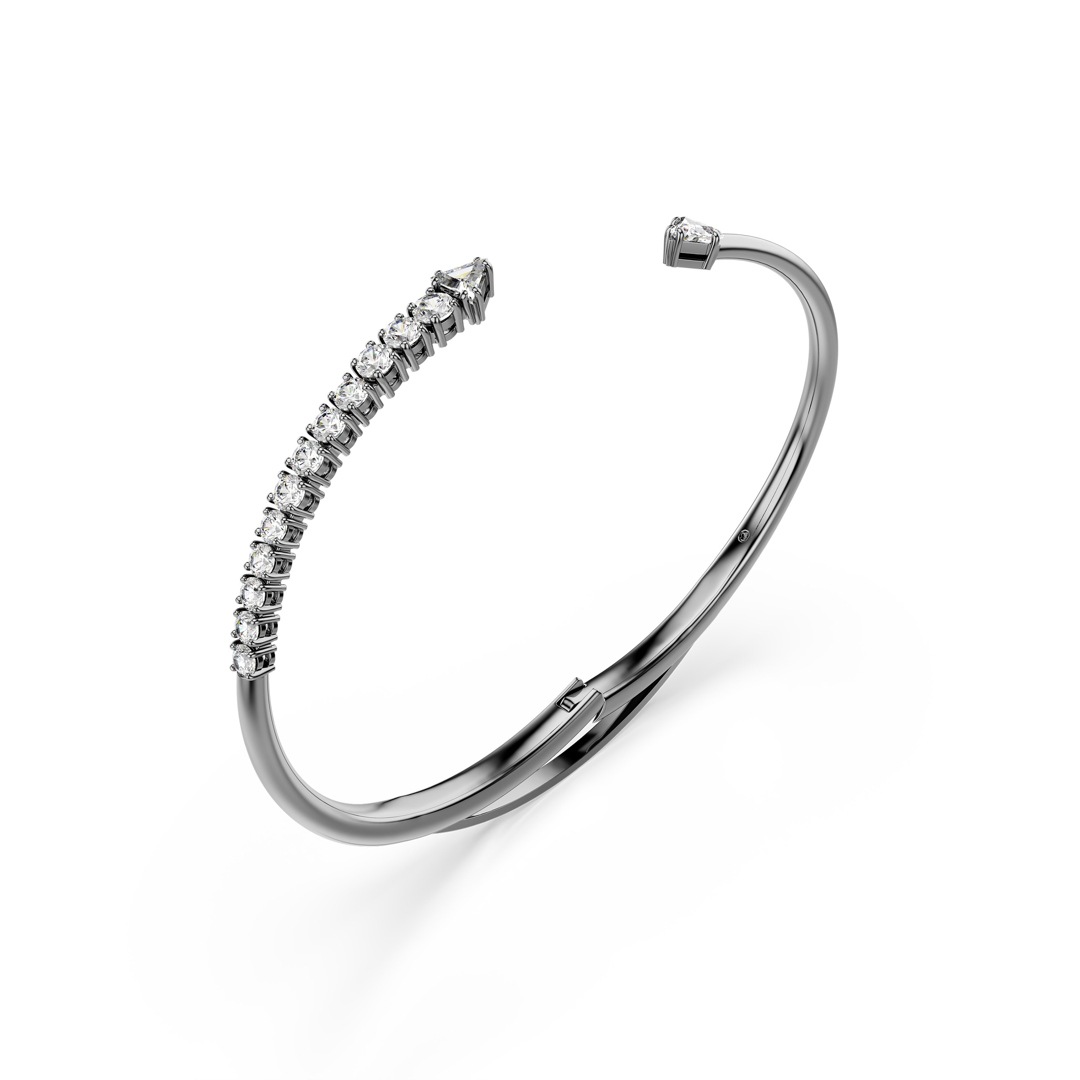 Mit diesem ausdrucksstarken Sublima Armreif bringen Sie eine völlig andere Seite Ihrer Schönheit perfekt zur Geltung. Das offene, ruthenierte Design schmiegt sich spiralförmig ans Handgelenk und strahlt mit vielen klaren Swarovski Zirconia in Krappenfassungen.