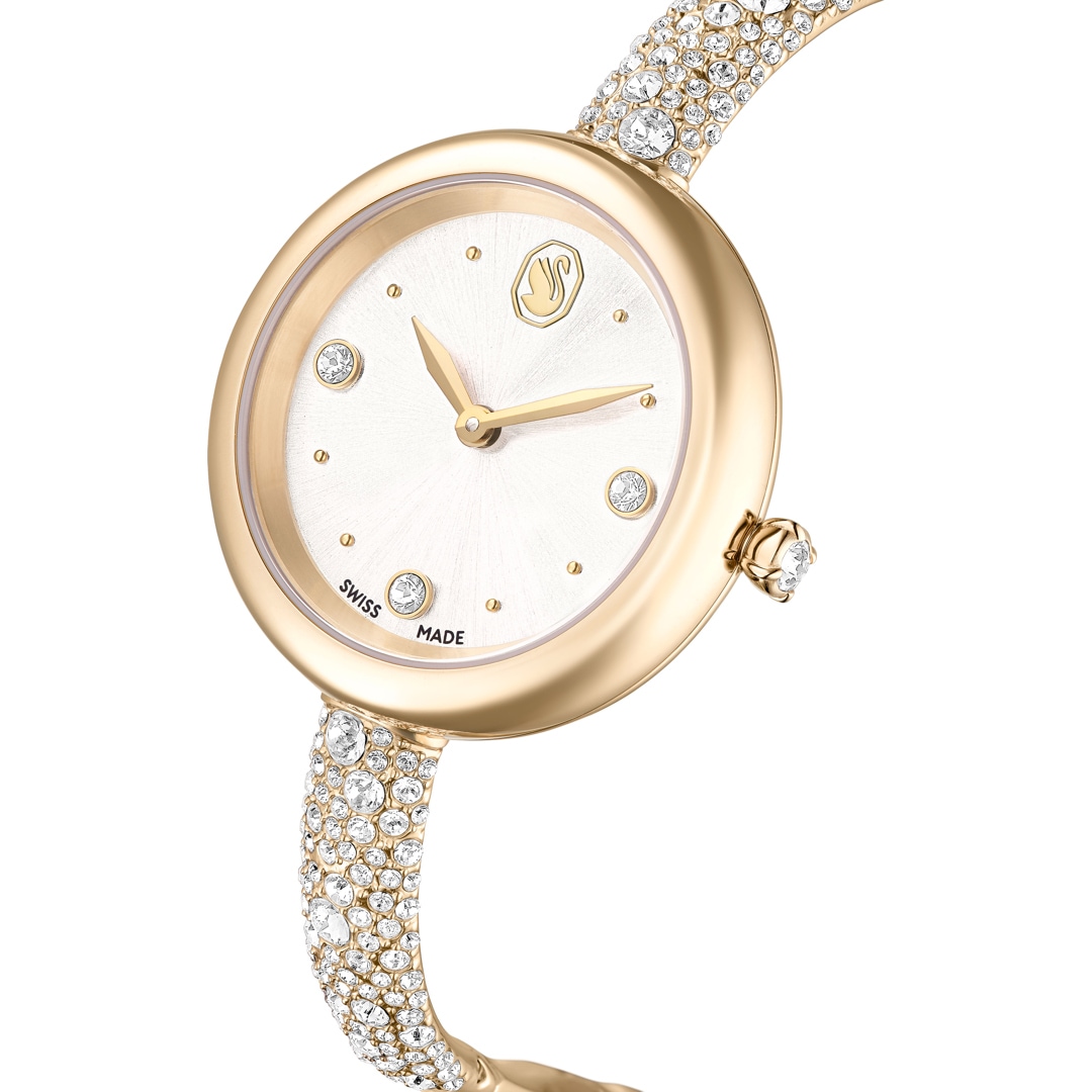 Diese Sublima Armbanduhr ist die kreative Neuinterpretation eines glänzenden Understatement. Die Kreation in Champagner-goldfarbenem Edelstahl präsentiert ein wunderschön abgerundetes 28-mm-Gehäuse. Auf dem Zifferblatt im Sonnenstrahl-Finish glänzen drei Kristallindexe und das Schwan-Logo, während der grazile Armreif mit rund 168 Kristallen im Meteora-Muster verziert ist. Diese Armbanduhr in Swiss Made Qualität ist wasserdicht bis 50 Meter und damit ein exquisiter Zeitmesser.