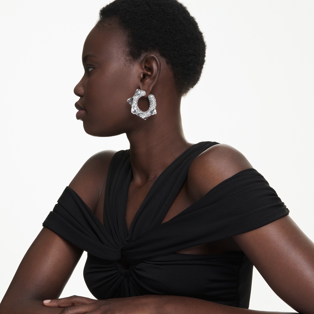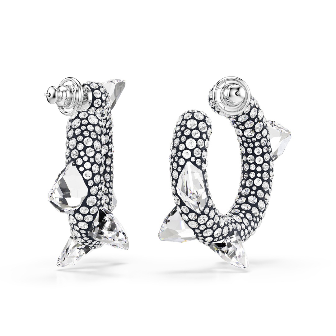 Diese dramatischen Ohrringe erzielen immer glänzende Wirkung. Die trendig ruthenierten Kreationen mit Swarovskis feinstem Savoir-faire präsentieren schimmernde Pointiage® Kristalle und spitze Kristalle, die im Licht strahlen.
