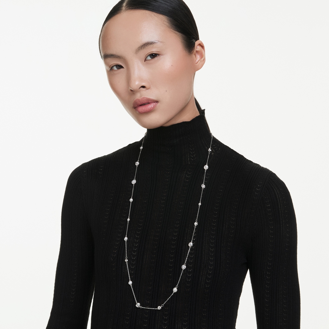 Diese vielseitige Matinée-Kette ist wie geschaffen für das Spiel mit verschiedenen Styles. Die lange rhodinierte Kette mit ihren schimmernden, beidseitig tragbaren Motiven ist ideal für den Layering Look. Wenden Sie das Schmuckstück in Sekundenschnelle, um die Rundkristalle auf der anderen Seite zu präsentieren. Kombinieren Sie diese Kreation mit weiteren Una Angelic Schmuckstücken und erleben Sie einen Look mit ultimativer Strahlkraft.