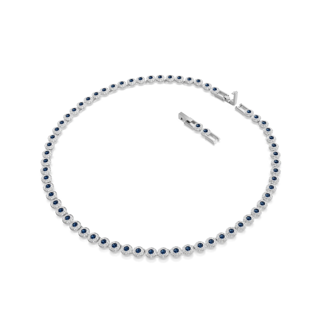 Sichern Sie sich vollkommenen Glanz mit dieser Version der Una Angelic Halskette. Das rhodinierte Design kombiniert leuchtend blaue Kristalle und schimmerndes Pavé und verleiht jedem Moment Schönheit. Dieses zeitlose Highlight verfügt über ein Verlängerungsstück und lässt sich mühelos mit anderen Schmuckstücken der gleichen Familie kombinieren.