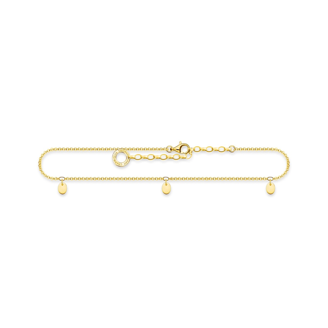 Let´s dance: Das Fusskettchen ist aus hochwertigem 925er Sterlingsilber filigran gearbeitet und mit einer Gelbgold-Vergoldung veredelt. Drei leicht bei Bewegung hin und her tanzende Coin-Anhänger in ovaler Form machen es zum verspielten Blickfang am Knöchel. Die Thomas Sabo Fusskette besitzt eine verstellbare Länge von 22 bis 27 cm. Ein Karabinerhaken lässt sich in einem Verlängerungskettchen mit Charm Club Logo individuell befestigen. Das perfekte Accessoire zu sportlichen Sneakers ebenso wie zu schicken Sandalen.