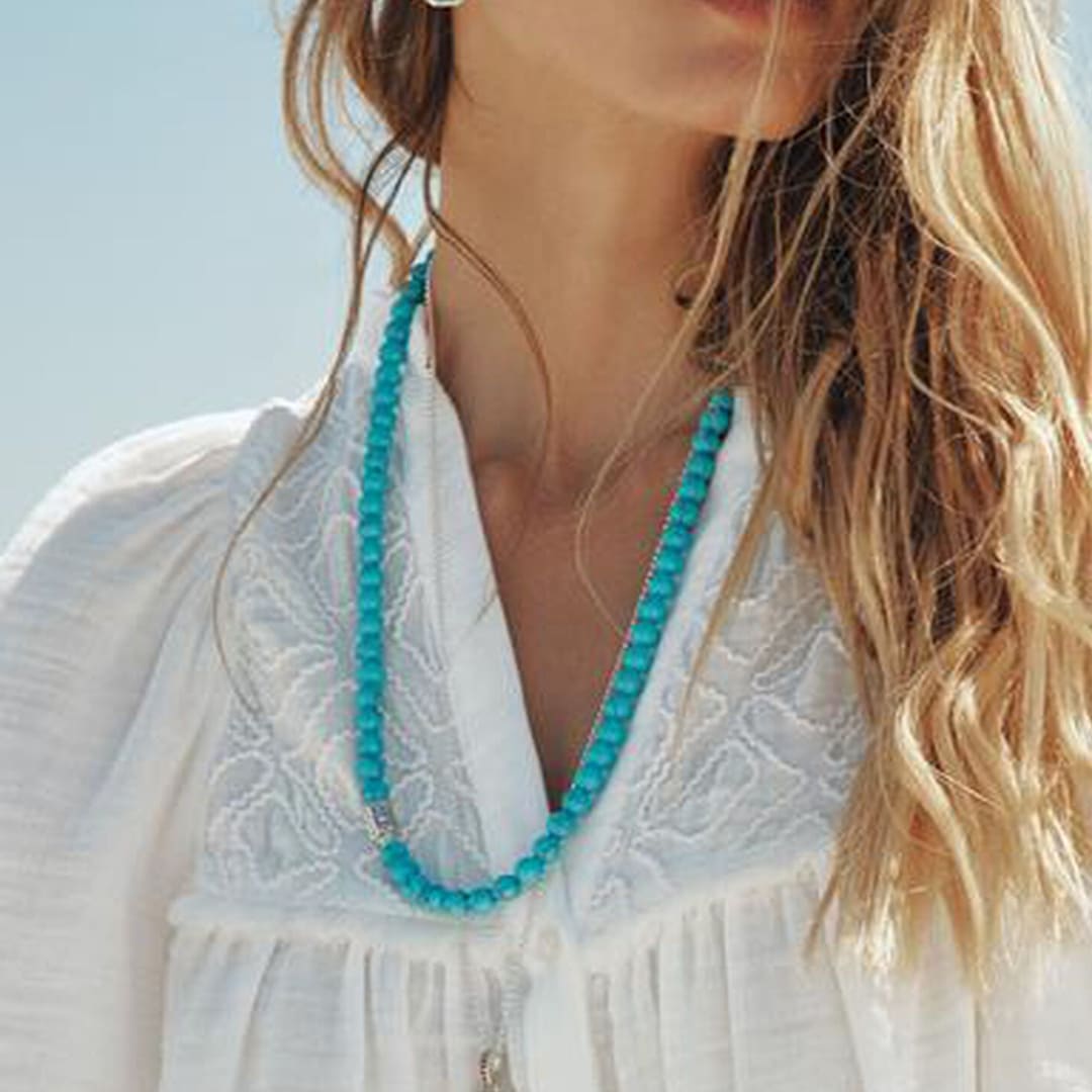 - Halskette aus rund polierten Beads aus imitiertem Türkis