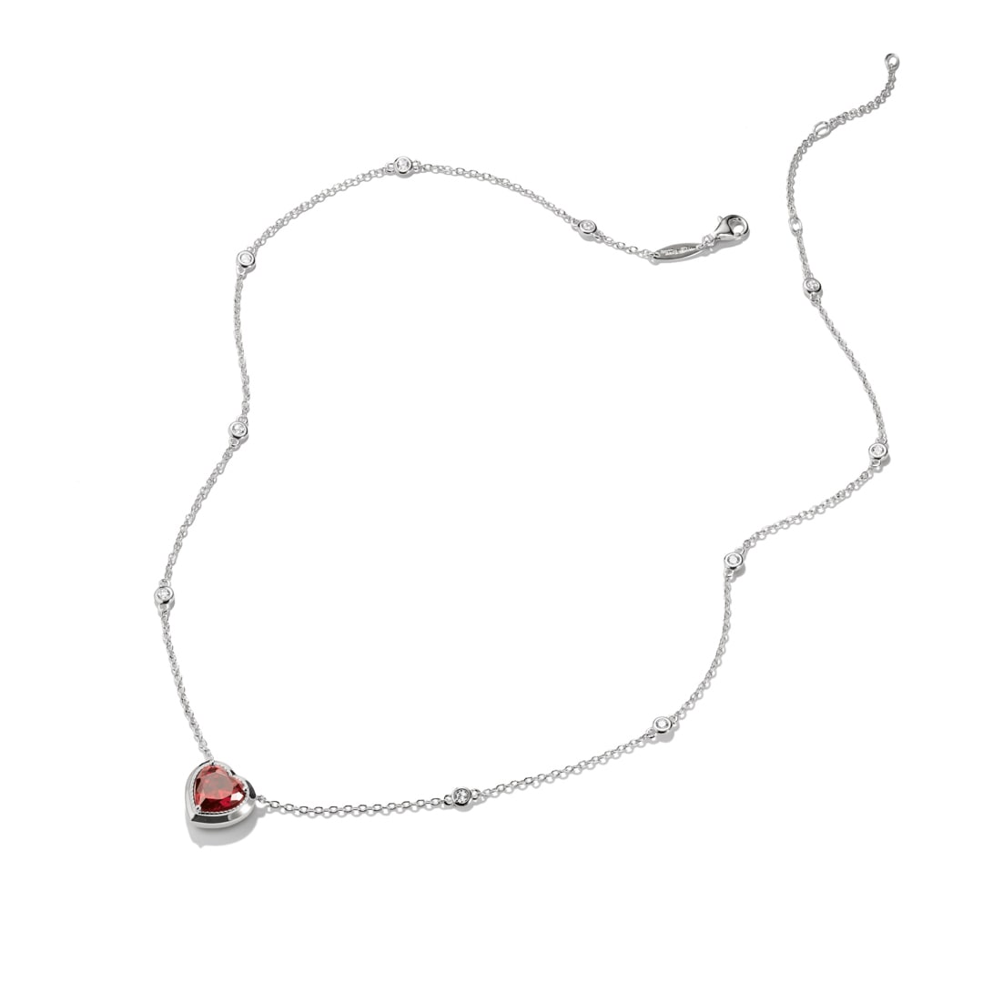 - Elyndra Halskette aus recyceltem 925 Sterling Silber mit granatrotem Herz-Zirkonia