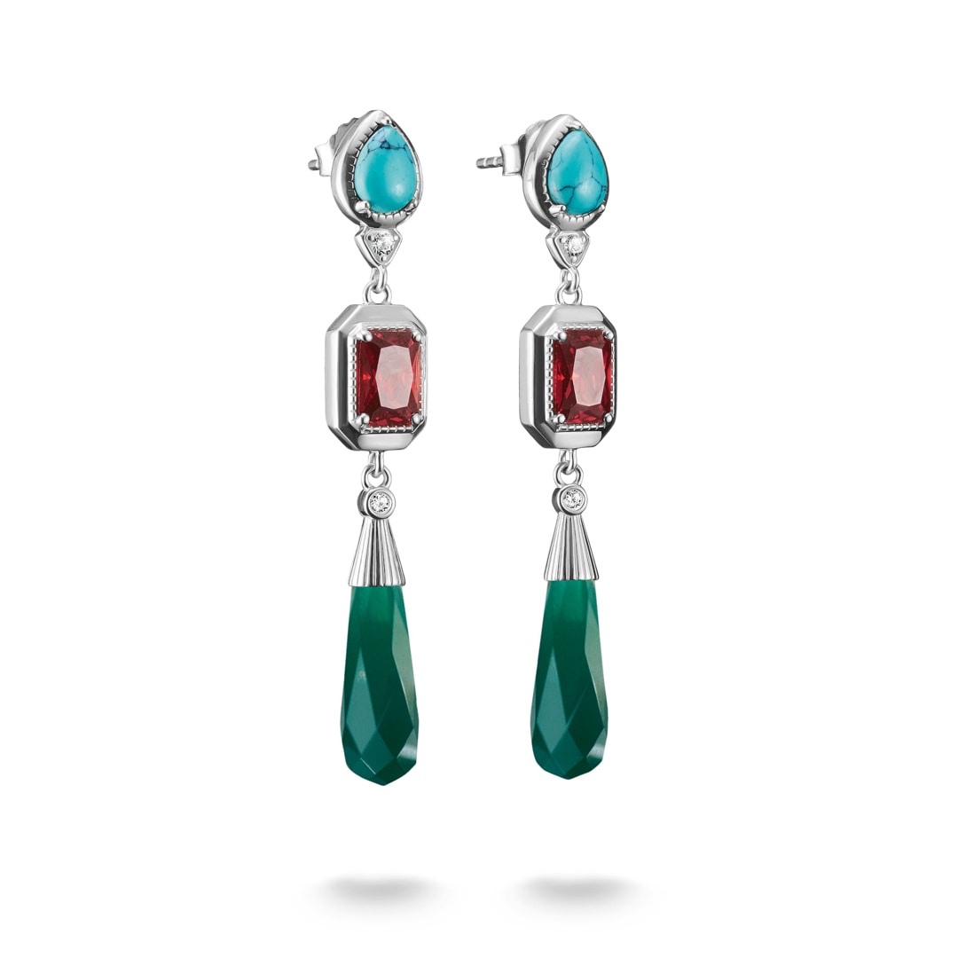 - Tropfenförmiger Türkis, roter Oktagon-Zirkonia & grüner Achat