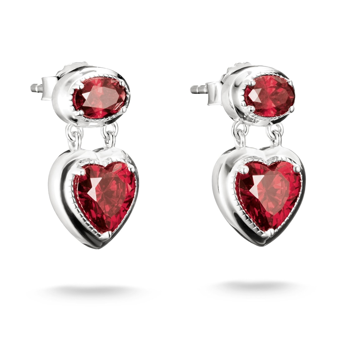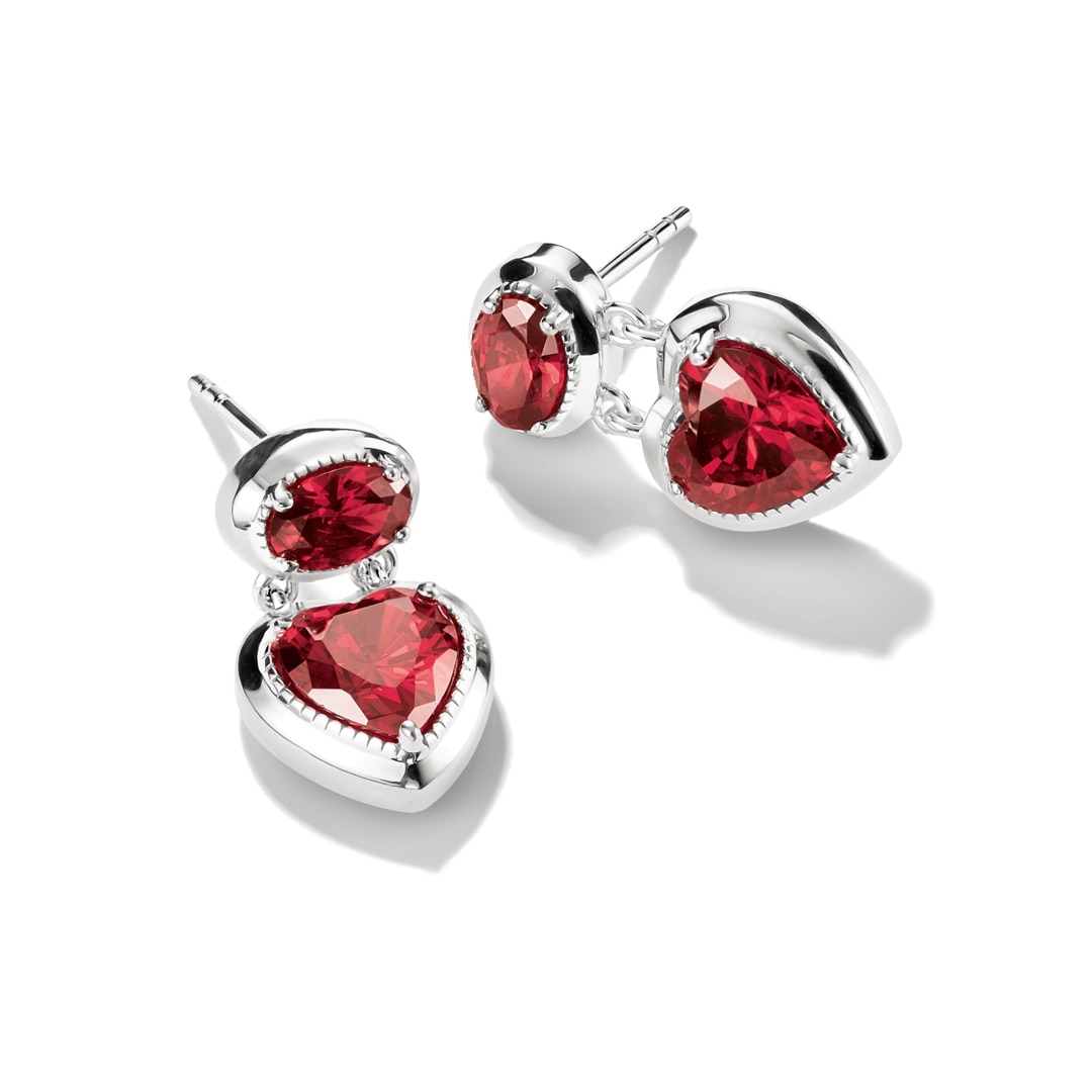 - Ohrstecker aus recyceltem 925 Sterling Silber mit granatroten Zirkoniasteinen im Oval- und Herzschliff