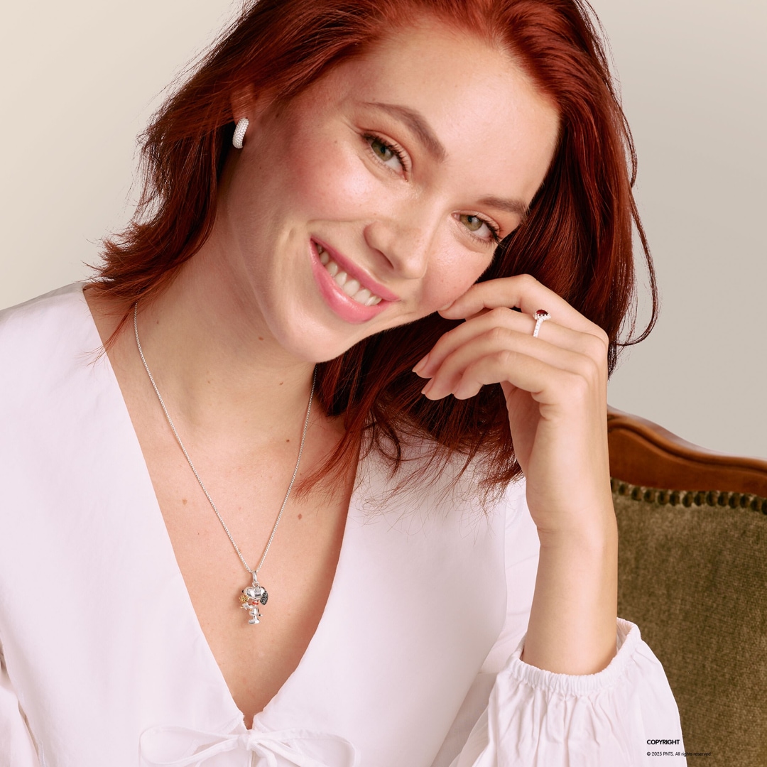 Die THOMAS SABO x Peanuts Kette Snoopy Pavé verbindet Glanz mit Comic-Charme: Snoopys Ohren funkeln mit schwarzen Zirkoniasteinen, sein rotes Halstuch aus Emaille setzt einen frischen Farbakzent, während Woodstock hochwertig vergoldet ist. Ein stilvoller Begleiter für alle, die verspielte Details mit einem Hauch Glamour kombinieren.