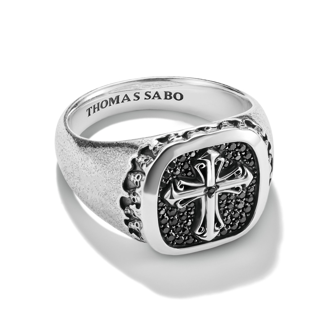 Thomas Sabo Rebel at Heart Siegelring mit Kreuz Schwarzer Zirkonia Rebel Icons Silber