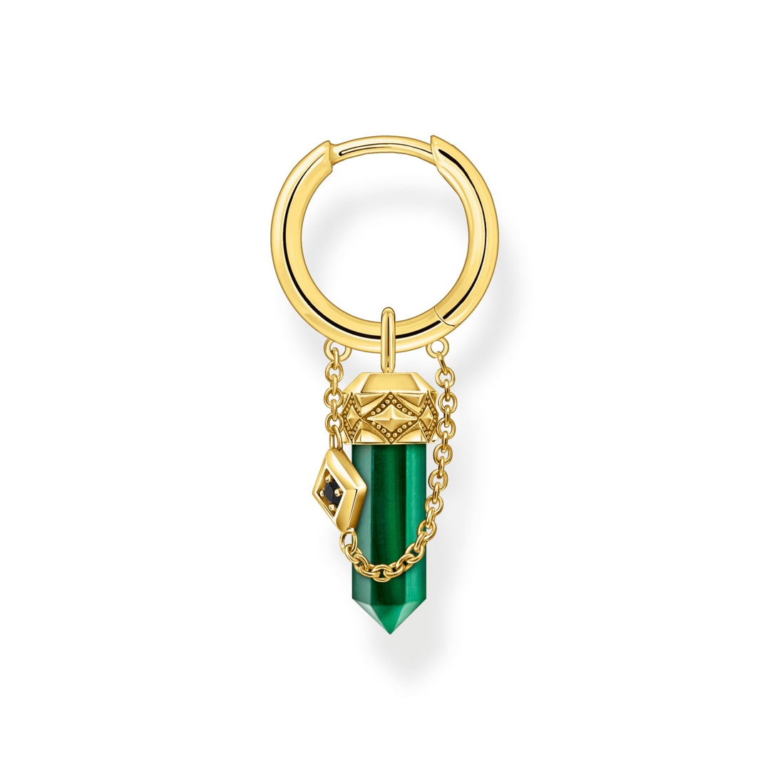 Thomas Sabo Rebel Crystal Einzel-Creole mit grünem Malachit-Anhänger vergoldet