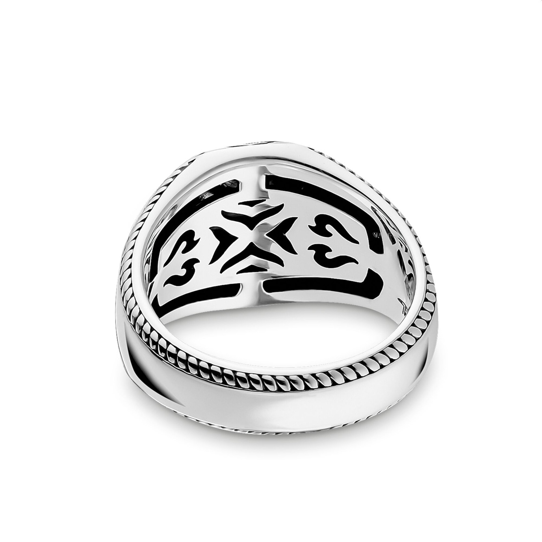Symbol für Stärke und Würde: Dieser Siegelring zeigt einen Tigerkopf mit schwarzen Zirkonia-Augen. Durch die Form sowie auch den Vintage-inspirierten Reliefrahmen erinnert das Design an den Stil von College-Ringen. Die leicht abgerundete, polierte Ringschiene macht den Ring sehr komfortabel.