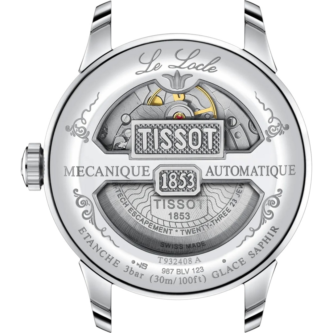 Die Tissot Le Locle COSC 39mm verfügt über kratzfestes, entspiegeltes Saphirglas, das das fein gearbeitete Zifferblatt mit Datumsanzeige sicher schützt. Durch den gläsernen Sichtboden des Gehäuses lässt sich das Chronometer-Automatikwerk bei seiner unermüdlichen Arbeit beobachten.