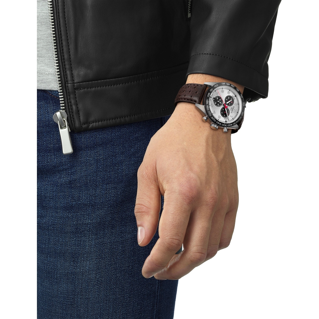 In der mittlerweile 163-jährigen Geschichte hat die Schweizer Traditionsmarke Tissot zahlreiche Uhrenklassiker hervorgebracht. Zweifellos gehört auch die Tissot PRS 516 zu diesen Ikonen und begeistert Uhrenliebhaber bereits seit den 1960er Jahren. 2021 legt Tissot sein Erfolgsmodell wieder neu auf und präsentiert mit dem PRS 516 Quartz Chronograph einen markanten Zeitmesser, der die Sportlichkeit seines Vorgängers gekonnt in die heutige Zeit überträgt und stilsicher historisches Erbe mit modernen Details kombiniert. Auf den ersten Blick fällt das kräftige, durchbrochene Lederarmband mit Butterfly-Faltschliesse und Drückern ins Auge, angelehnt an die Sportlenkräder der damaligen Zeit. Das 316-Edelstahlgehäuse mit entspiegeltem Saphirglas wird von einer schwarzen Tachymeter-Lünette charakterisiert.