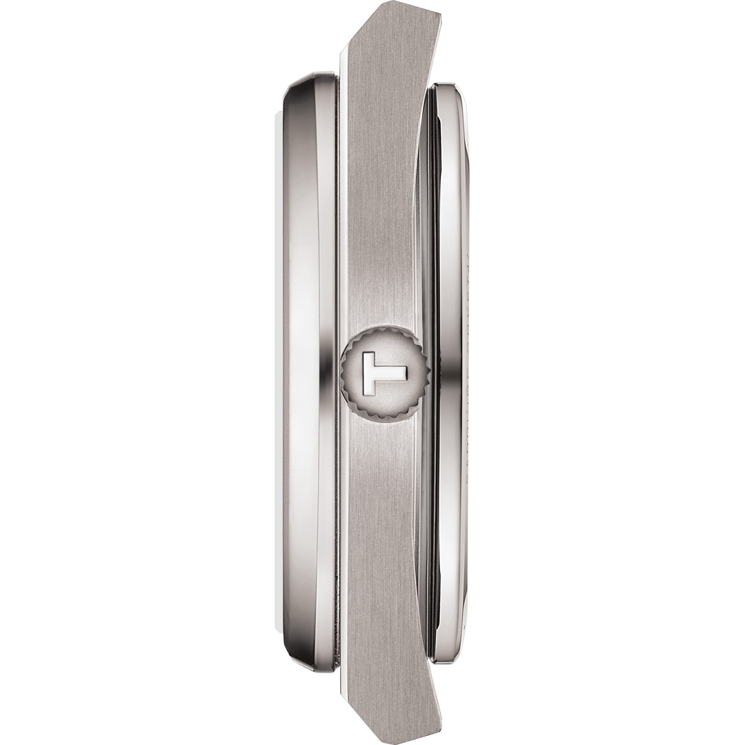 Komplettiert wird die Tissot PRX 38mm von einem flexiblen Titanarmband mit Butterfly-Faltschliesse mit Drückern. Dank Schnellwechselsystem lässt es sich einfach und werkzeuglos austauschen.