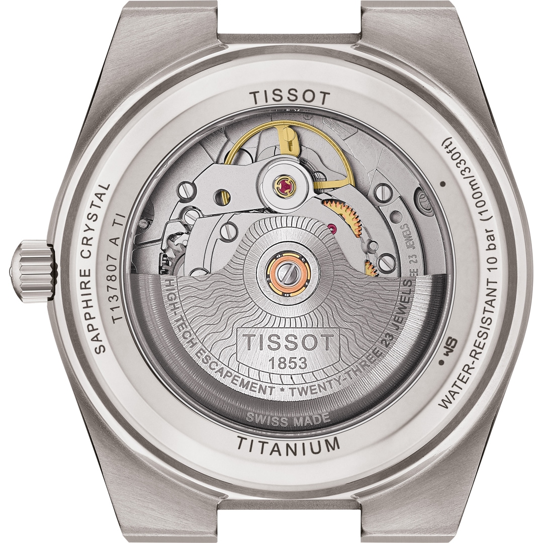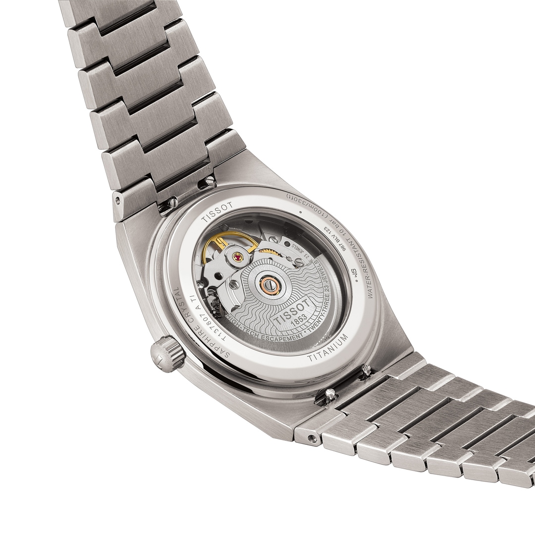 Eine Ikone, wiedergeboren aus modernstem Material: Titan. Wenn Sie auf der Suche nach einer einzigartigen Uhr mit authentischem 70er-Jahre-Feeling sind, dann ist diese Tissot PRX 38mm genau das Richtige für Sie.