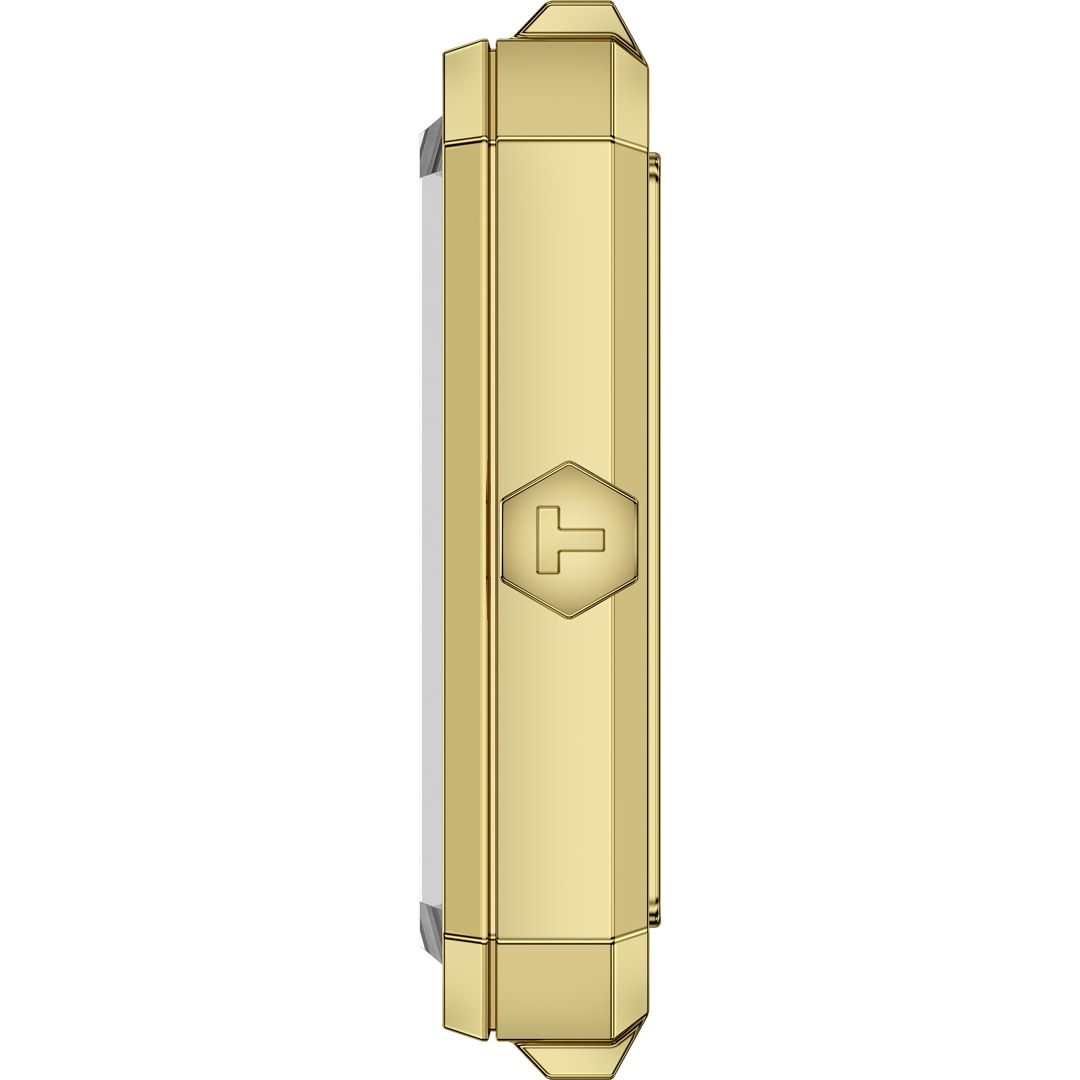 Das Quarzwerk der SRV sorgt für eine Präzision, die es ihr ermöglicht, kämpferisch voranzugehen, und mit dem End-of-Life-Indikator antizipiert die SRV ihren nächsten Schritt, so dass sie immer vorbereitet ist. SRV ist nicht nur ein Name, sondern steht auch für Sapphire Rectangle V: ein facettiertes Saphirglas mit rechteckiger Silhouette, und das "V" ist eine Anspielung auf die Wasserdichtigkeit von 5 bar.