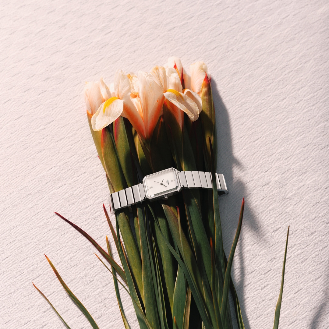 Das Quarzwerk der SRV sorgt für eine Präzision, die es ihr ermöglicht, kämpferisch voranzugehen, und mit dem End-of-Life-Indikator antizipiert die SRV ihren nächsten Schritt, so dass sie immer vorbereitet ist. SRV ist nicht nur ein Name, sondern steht für Sapphire Rectangle V: ein facettiertes Saphirglas mit rechteckiger Silhouette, und das "V" ist eine Anspielung auf die Wasserdichtigkeit von 5 bar, symbolisiert durch die römische Zahl 5.