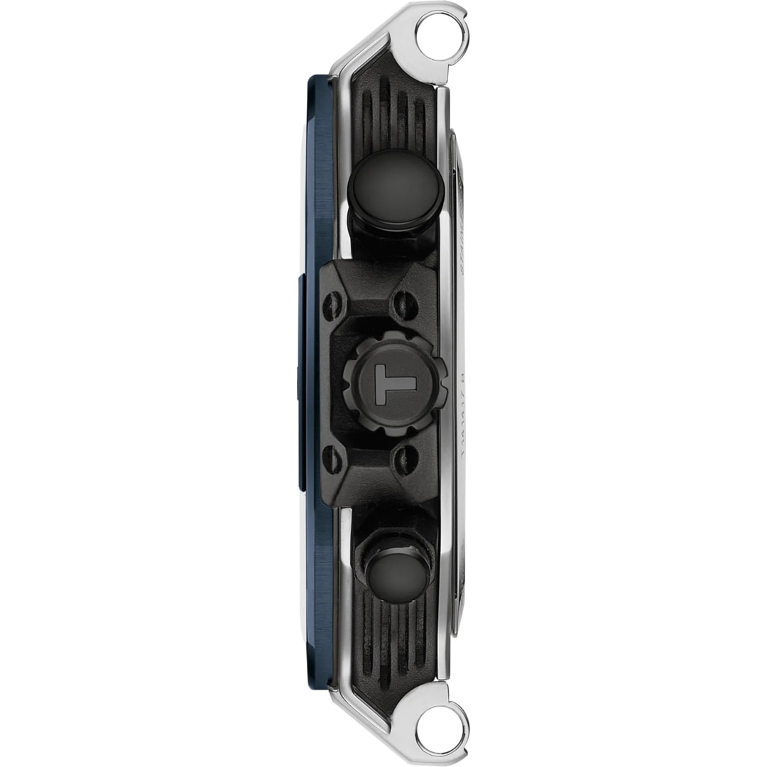 Ihre Wasserdichtigkeit bis zu einem Druck von 10 bar (100 m), ihr präzises Quarz-Chronographenwerk und markante, mit Super-LumiNova© Leuchtbeschichtung versehene Stunden- und Minutenzeiger sowie das Kautschukarmband mit Dornschliesse machen die T-Race 45mm zum idealen Begleiter für Motorradfans.