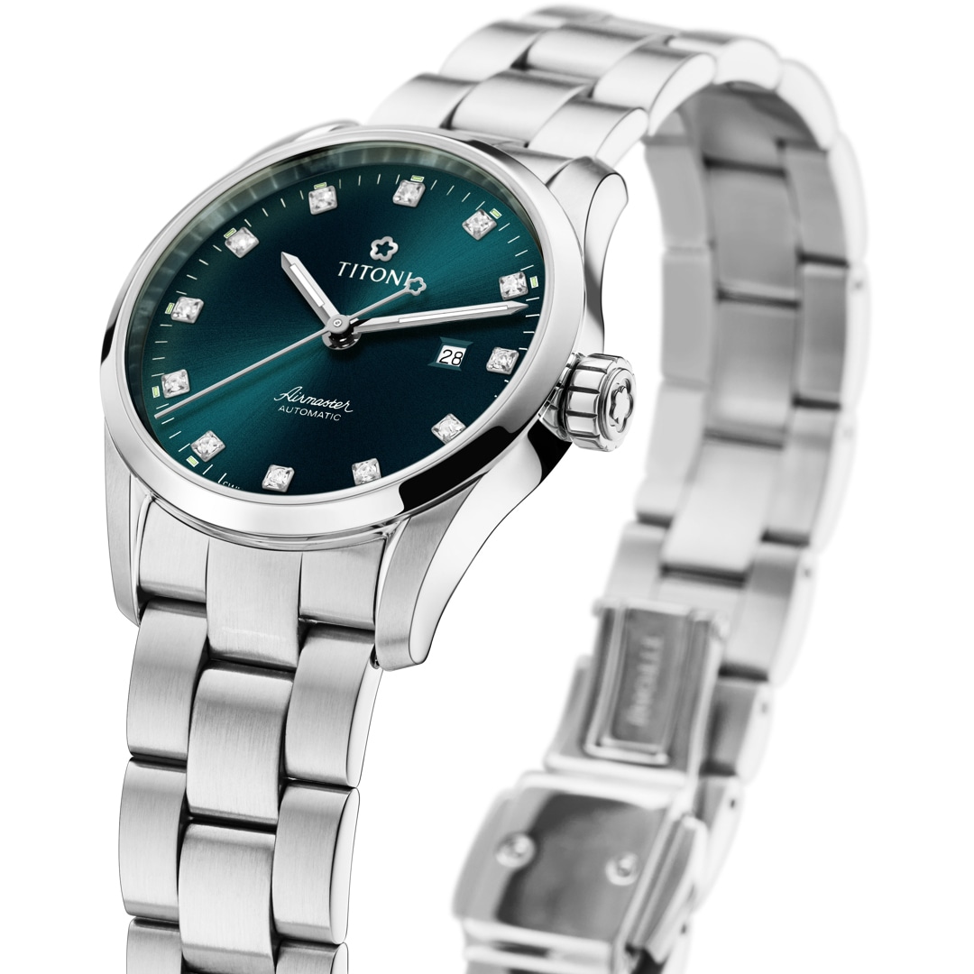 Die Ursprünge der Airmaster reichen zurück bis zur ersten bemannten Mondlandung im Jahr 1969. Dank des grösseren Sichtfensters wirkt dieses neu überarbeitete Modell der legendären Uhrenserie deutlich frischer und klarer. Gleichzeitig hat es sich die kraftvolle Ausstrahlung bewahrt, die die Serie seit Jahrzehnten auszeichnet. Alle Uhren der Airmaster-Kollektion werden ausschliesslich unter Verwendung hochwertiger Teile gefertigt. Ein Grund mehr dafür, dass sich diese TITONI-Serie im Lauf von Generationen Kultstatus erworben hat.