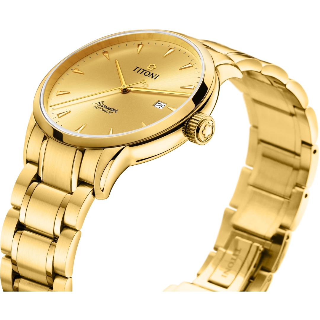 Seit 1919 vereint das Familienunternehmen Titoni auf elegante Weise traditionelle Uhrmacherkunst mit den neuesten technologischen Errungenschaften und strebt bei jeder Kreation stets nach Perfektion. Das Wesen der Schweizer Uhren von Titoni offenbart sich in ihrer akribischen Liebe zum Detail. Als eines der wenigen verbliebenen unabhängigen Familienunternehmen in der Schweiz verkörpert Titoni Beständigkeit und Tradition. Über mehrere Generationen hinweg hat die Familie Schluep die Geschicke des Unternehmens gelenkt, stets mit einer langfristigen Vision, um die Stabilität und Langlebigkeit des Unternehmens zu sichern. Seit 2022 führt die vierte Generation mit Stolz dieses Erbe fort.