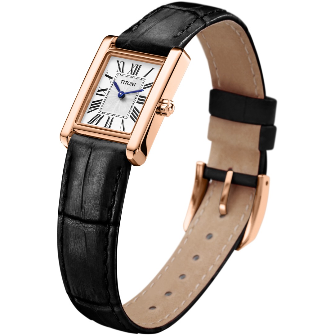 Die Mademoiselle-Kollektion von Titoni vereint klassische Ästhetik mit moderner Finesse. Mit ihrem rechteckigen Edelstahlgehäuse, römischen Indizes und kratzfestem Saphirglas strahlt sie zeitlose Eleganz aus – ein stilvoller Begleiter für jeden Moment. Die harmonischen Proportionen von 22 x 29.5 Millimetern verleihen der Uhr eine feminine Leichtigkeit, während das minimalistische Zifferblatt für stilvolle Zurückhaltung sorgt. Inspiriert vom Charme vergangener Jahrzehnte, interpretiert sie die klassische Damenuhr auf raffinierte Weise neu. Mademoiselle – für Frauen mit Gespür für Stil und Charakter.