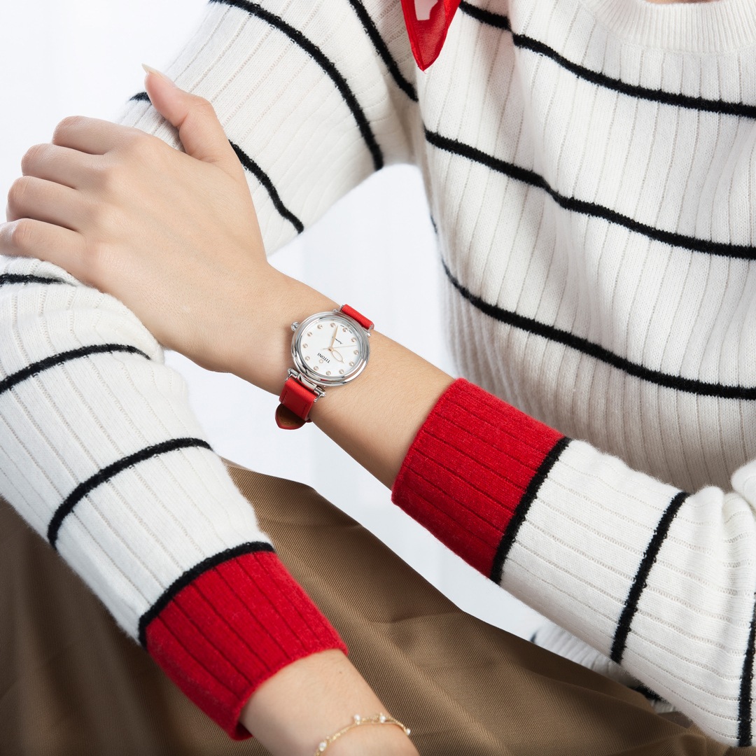 Das bezaubernde Design der TITONI-Serie Miss Lovely ist eine erfrischende und verspielte Neuinterpretation femininer Eleganz. Mit ihrer aparten Ästhetik ziert diese Automatikuhr das Handgelenk ihrer Trägerin auf besonders anziehende Weise. Die spielerischen Elemente verleihen dem klassischen Ideal vollendeter Weiblichkeit eine weiche und anmutige Note.
