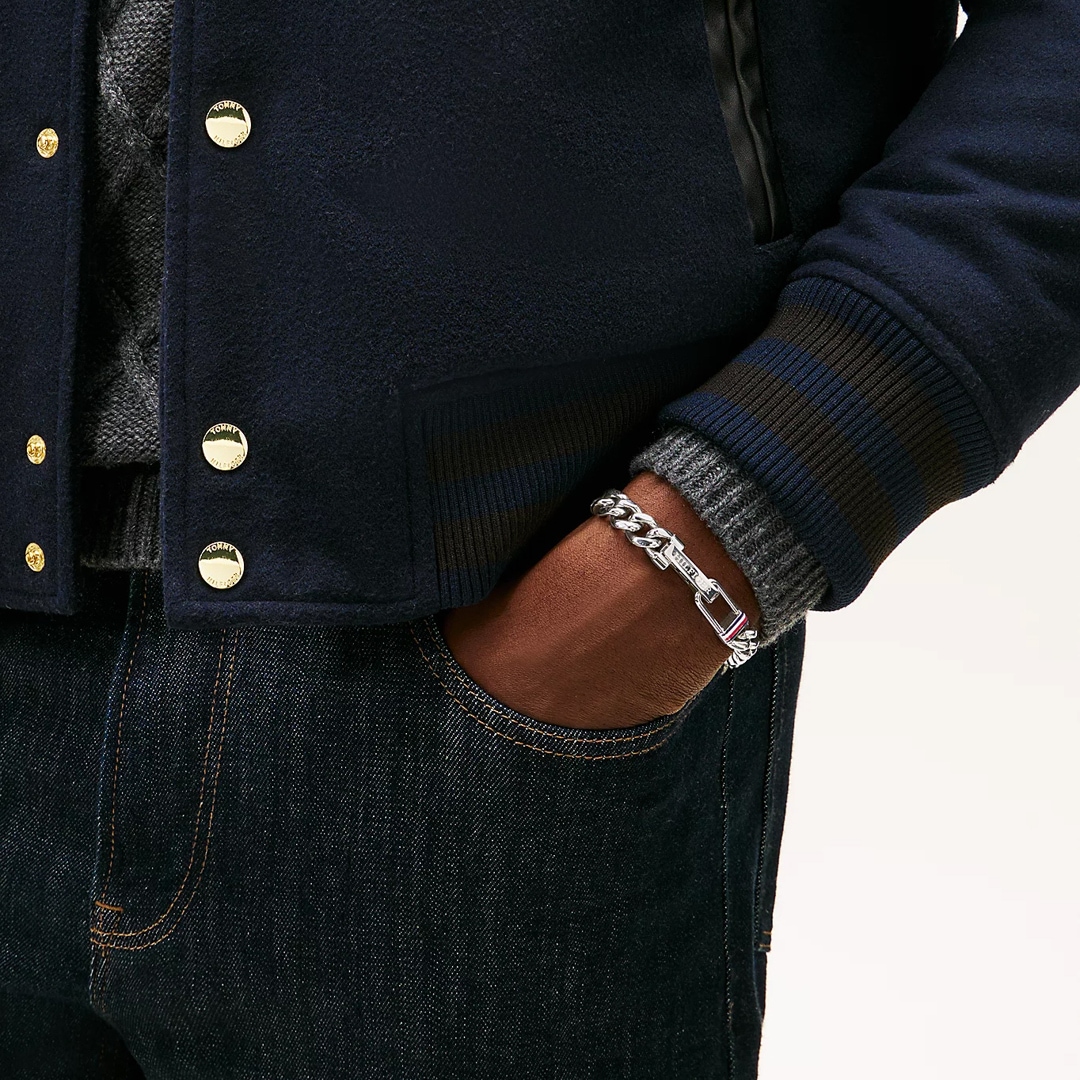 Kombinieren Sie dieses zeitlose Armband von Tommy Hilfiger aus Edelstahl mit anderen tollen Accessoires und besonderen Details. Das Armband untermauert jegliche Maskulinität in typisch hoher Tommy Hilfiger Qualität. Ein gekonnt platziertes Tommy Hilfiger Logo sticht dabei besonders hervor und rundet dieses tolle Accessoire auf moderne Weise ab.